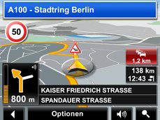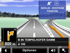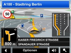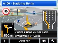 Fahrspurassistent Pro hilft Ihnen selbst durch den hektischsten Straßenverkehr hindurch. Vorausschauend und übersichtlich zeigt er Ihnen an, auf welche Fahrspur Sie für Ihren nächsten und übernächsten Abbiegepunkt wechseln müssen. |