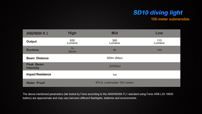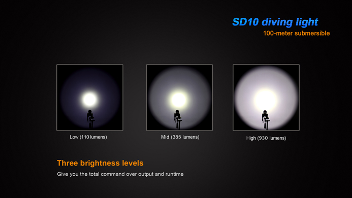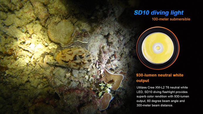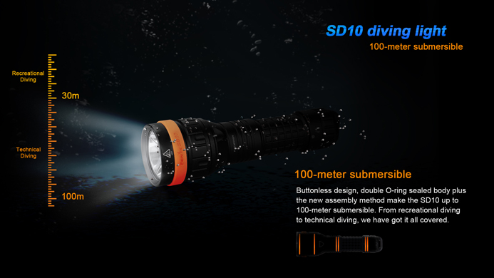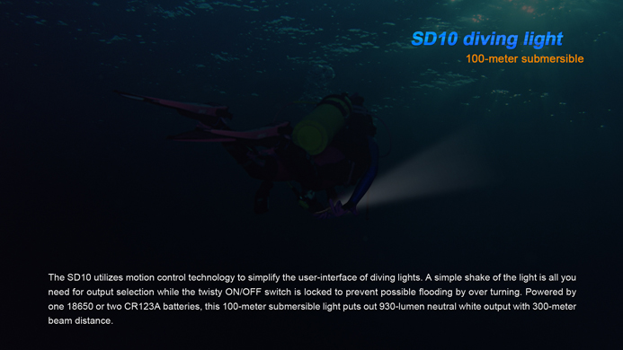 Fenix SD10 LED Tauchlampe mit 930 Lumen inkl. 2 CR123A Batterien