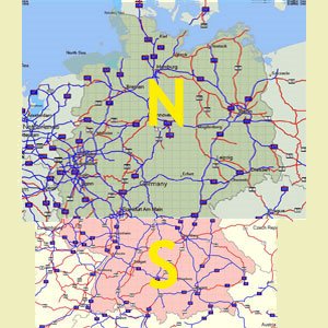 - Deutschland Nord circa Abdeckung: geht von 10 km südlich Frankfurt am Main bis Flensburg.