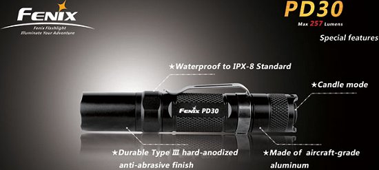 Sie haben nun folgende Möglichkeiten:Die Fenix PD30 verfügt über eine Cree XP-G R5 LED und bringt mit zwei CR123A Batterien eine Lichtleistung von 257 Lumen. Die Fenix PD30 ist digital geregelt für weitgehend konstante Helligkeit.