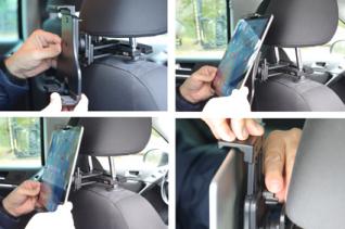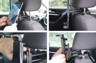 - Kopfstützen-Befestigung mit einstellbarer Halterung. Passt für Geräte mit/ohne Hülle mit Höhe 180-230 und max Dicke 25 mm. Passt für Kopfstützen mit Innen 95 mm und max. aussere Grösse 211 mm zwischen den Stangen.