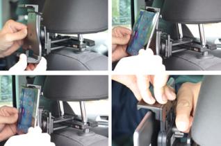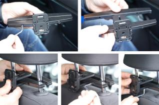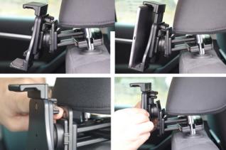 - Kopfstützen-Befestigung mit einstellbarer Halterung. Passt für Geräte mit/ohne Hülle mit Höhe 120-150 und max Dicke 25 mm. Passt für Kopfstützen mit Innen 95 mm und max. aussere Grösse 211 mm zwischen den Stangen.