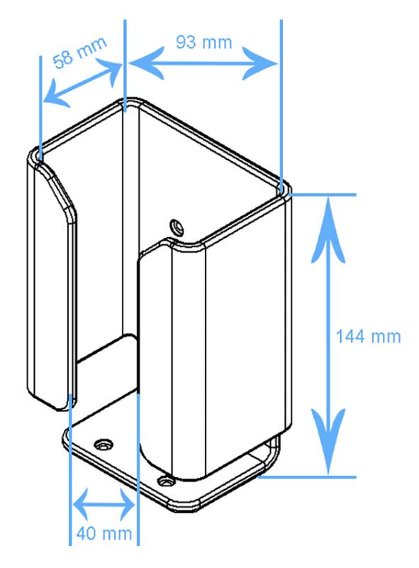 - Universeller Scannerhalter. Für Geräte mit Pistolgrip. Gerät mit der Vorderseite nach unten in die Halterung gelegt. X-Large. Innenmaße des Halters: 93x144x58 mm (BxHxT).