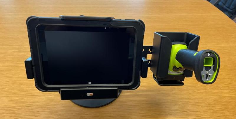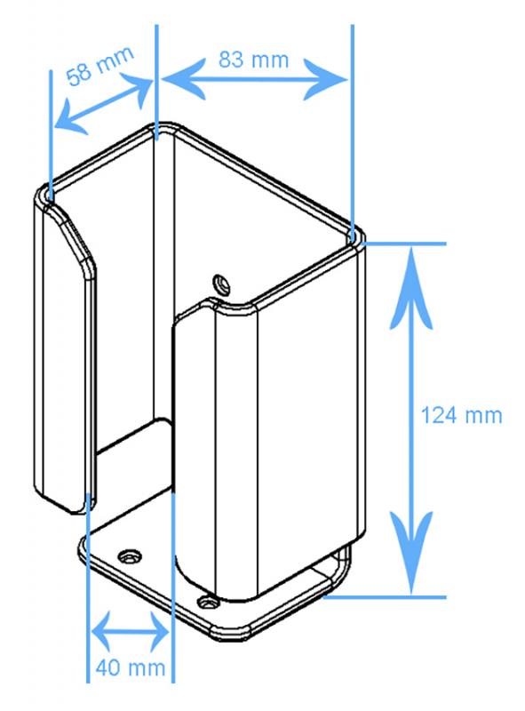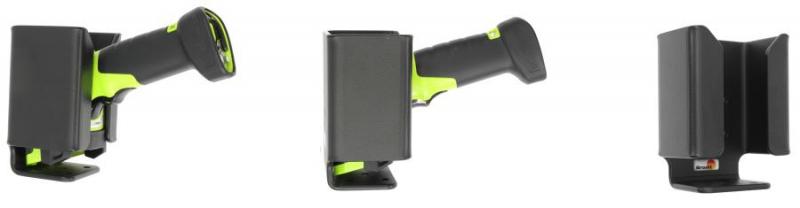 - Universeller Scannerhalter. Für Geräte mit Pistolgrip. Gerät mit der Vorderseite nach unten in die Halterung gelegt. Large. Innenmaße des Halters: 83x124x58 mm (BxHxT).