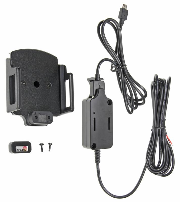 Mit dem Brodit KFZ Halter, 527622 verfügen Sie über ein Haltesystem mit Ladefunktion für Ihr mobiles Gerät. Ein Anschlusskabel zur Bordelektrik (Molex Anschluss) stellt die Stromversorgung der KFZ Halterung sicher.