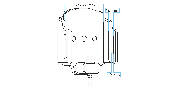 • Einstellbare Halterung mit microUSB Stecker. Passt für Geräte mit und ohne Hülle mit folgenden Dimensionen: Breite: 62-77 mm, Dicke: 12-16 mm. 2,1A Ladung. 12/24V. Mit Kugelgelenk.