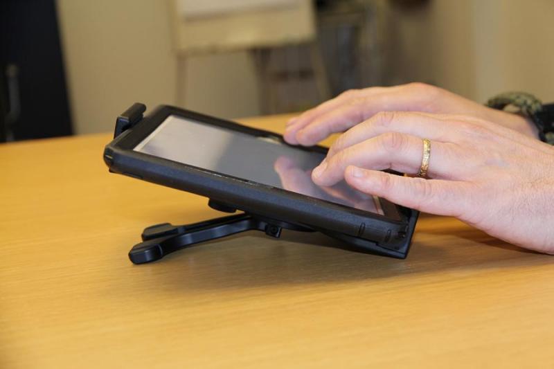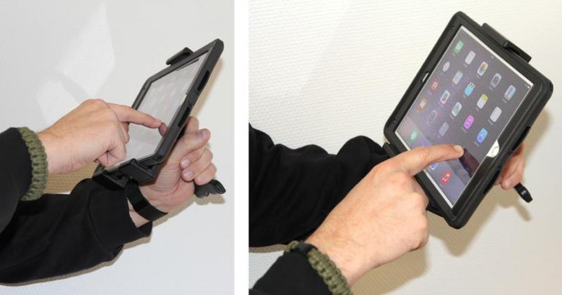 Alle Anschlüsse und Bedienelemente Ihres mobiles Gerät sind durch entsprechende Aussparungen in der Halteschale frei zugänglich. Und Sie können leicht zwischen quer- und Hochformat-Modus wechseln.