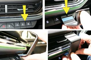 - Armaturenbrett / Mittelkonsole Ihres Skoda Enyaq IV werden nicht beschädigt, da keine Bohrungen erforderlich sind
