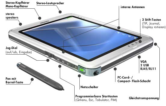 Der Tablet-PC benutzt Windows XP Tablet PC Edition, eine Variante von Windows XP Professional, ergänzt