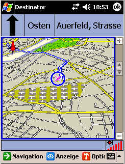 Ob Sie ein Vertreter oder ein Reisender, ein Roadwarrior oder ein Tourist sind, Destinator? ist für Sie genau das Richtige. Destinator? spart Zeit und Geld, denn er bringt Sie auf dem schnellsten oder kürzesten Wege ans Ziel. Mit steigenden Benzinpreisen ist Destinator? unentbehrlich für Außendienst und Lieferanten. Mit Destinator? können Sie Ihre Reiseroute optimieren und viel Zeit sparen. Destinator? ist auf eine einfache Handhabung ausgerichtet. Das Programm ist einfach zu erlernen und ebenso einfach zu bedienen. Eine hörbare Navigationshilfe steht Ihnen bei jeder Abzweigung und jeder Ausfahrt zur Seite.| Mit Destinator? tragen Sie keine weiteren Kosten oder Gebühren, und Sie müssen ihn auch nicht erst in Ihr Auto einbauen. Wählen Sie einfach Ihr Ziel, und schon kann es losgehen. Vorbei ist es mit der lästigen "Kartenhantiererei" und Sie werden auch nie wieder nach dem Weg fragen müssen. Sie erreichen Ihr Ziel schneller, einfacher und sicherer als je zuvor. Was ist wenn Sie sich mal verfahren? Kein Problem! Destinator? berechnet automatisch und sekundenschnell Ihre neue Reiseroute von wo immer Sie sich gerade befinden. Verlieren Sie das Verkehrsgeschehen nicht aus den Augen und lassen Sie sich über Lautsprecher den richtigen Weg erklären. Auch außerhalb des Wagens müssen Sie sich, mit Destinator? in der Tasche, nie wieder mit unhandlichen Straßenkarten abmühen. | ![]() |