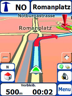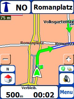 * Bitte beachten Sie, daß abhängig von der Leistungsfähigkeit Ihres PDAs und der Speicherkarte die Geschwindigkeit der Routenberechnung beeinflußt werden kann. Auch eine flüssige Wiedergabe der Route in der Kartenansicht (map rendering) kann durch die Hardware beeinträchtigt werden.*
