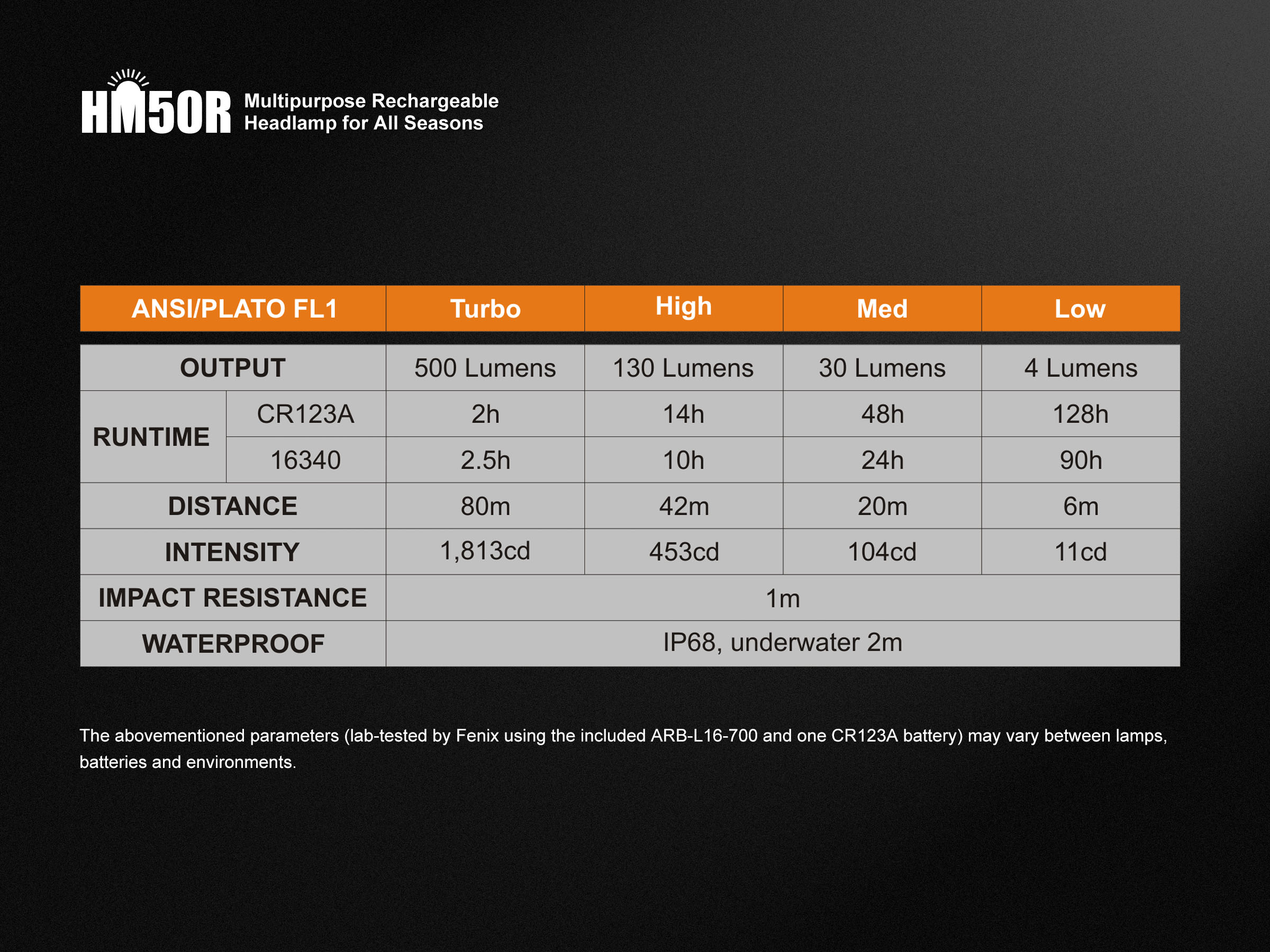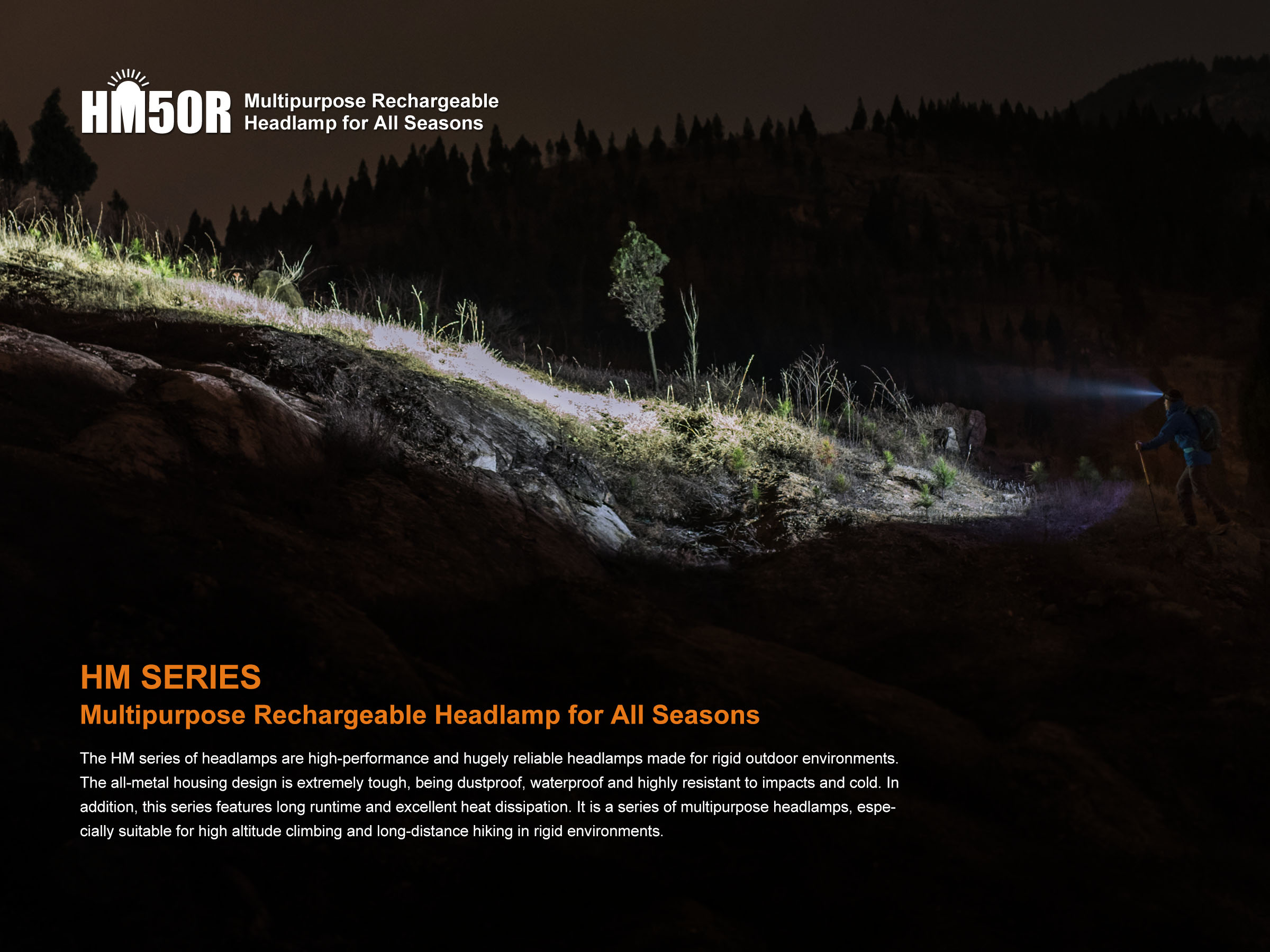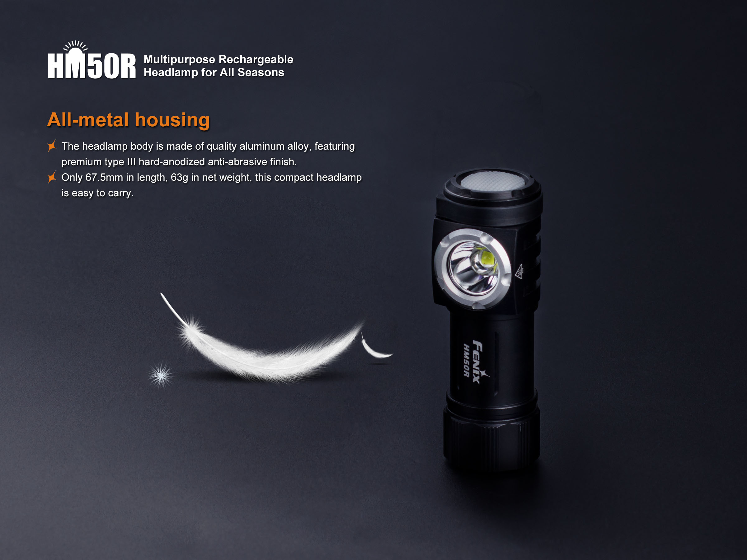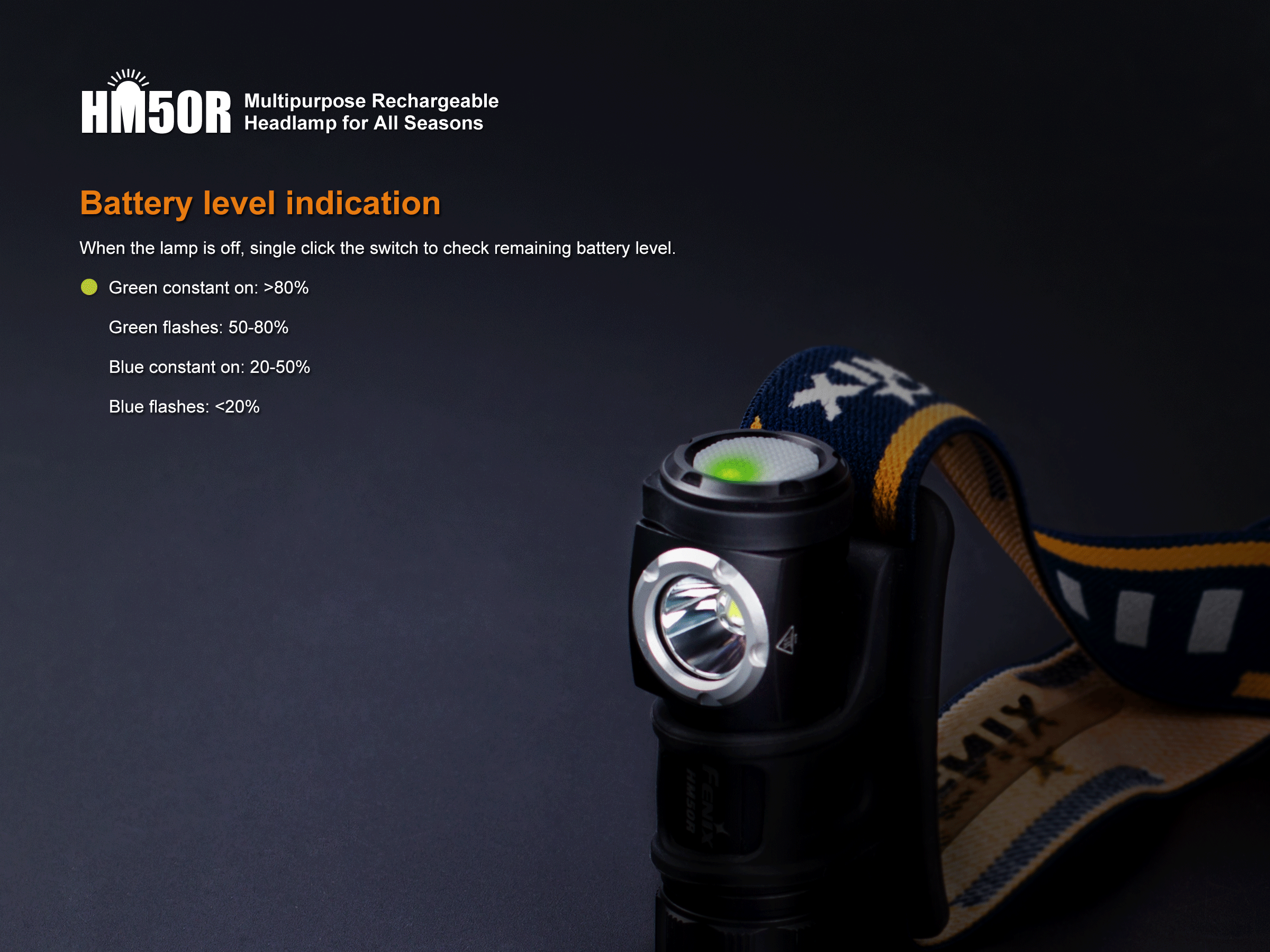 Die HM50R wird über einen aufladbaren 16340 Akku oder mit einer CR123A Batterie betrieben.