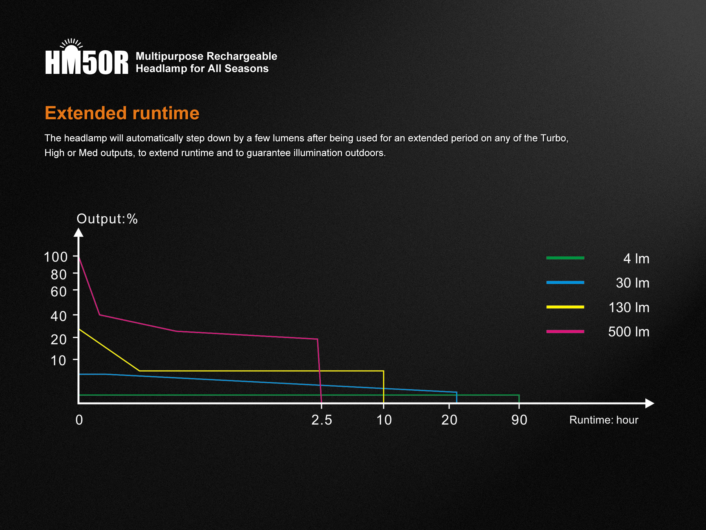 Leuchtstärke: 500 Lumen 130 Lumen 30 Lumen 4 Lumen