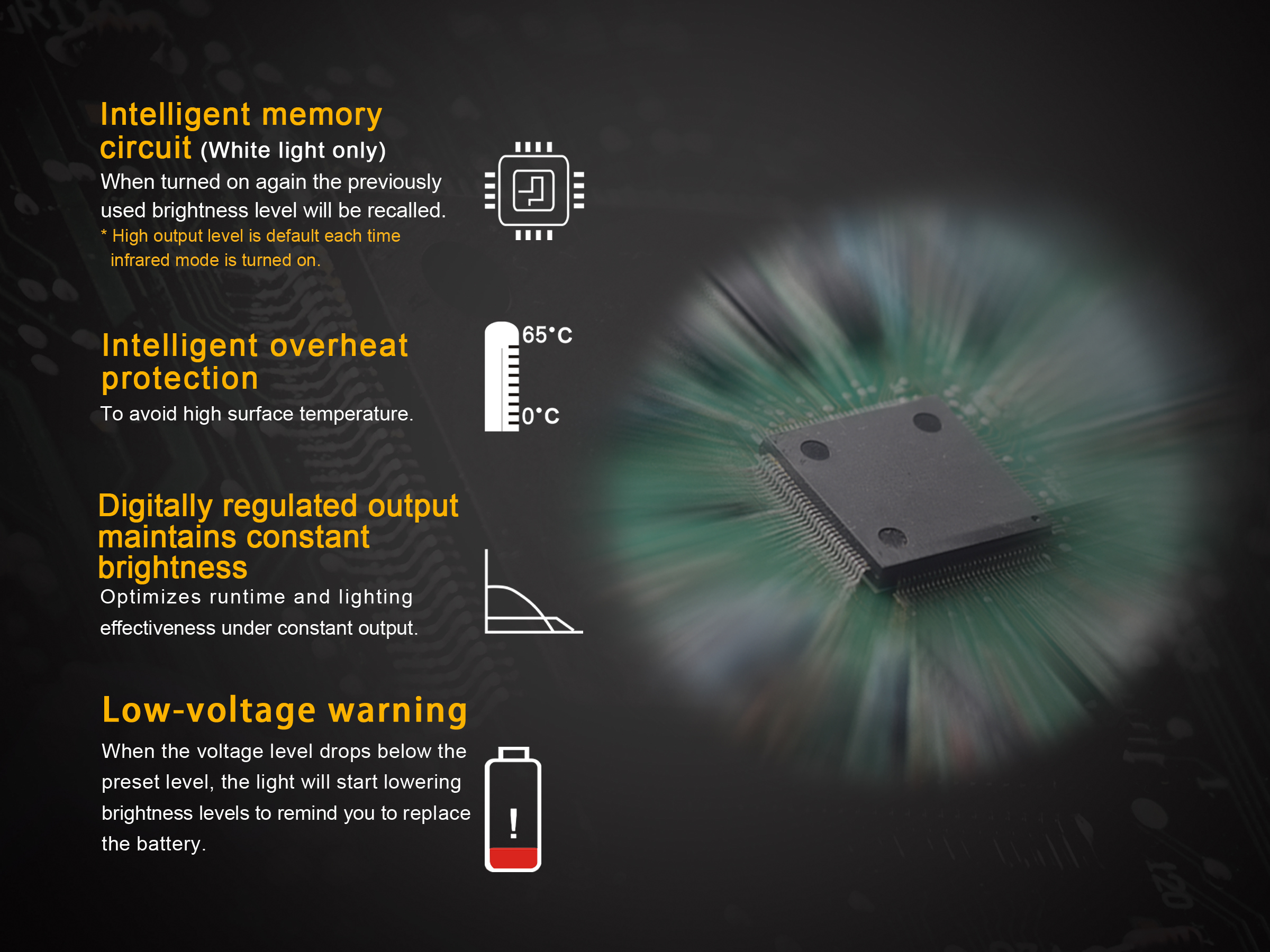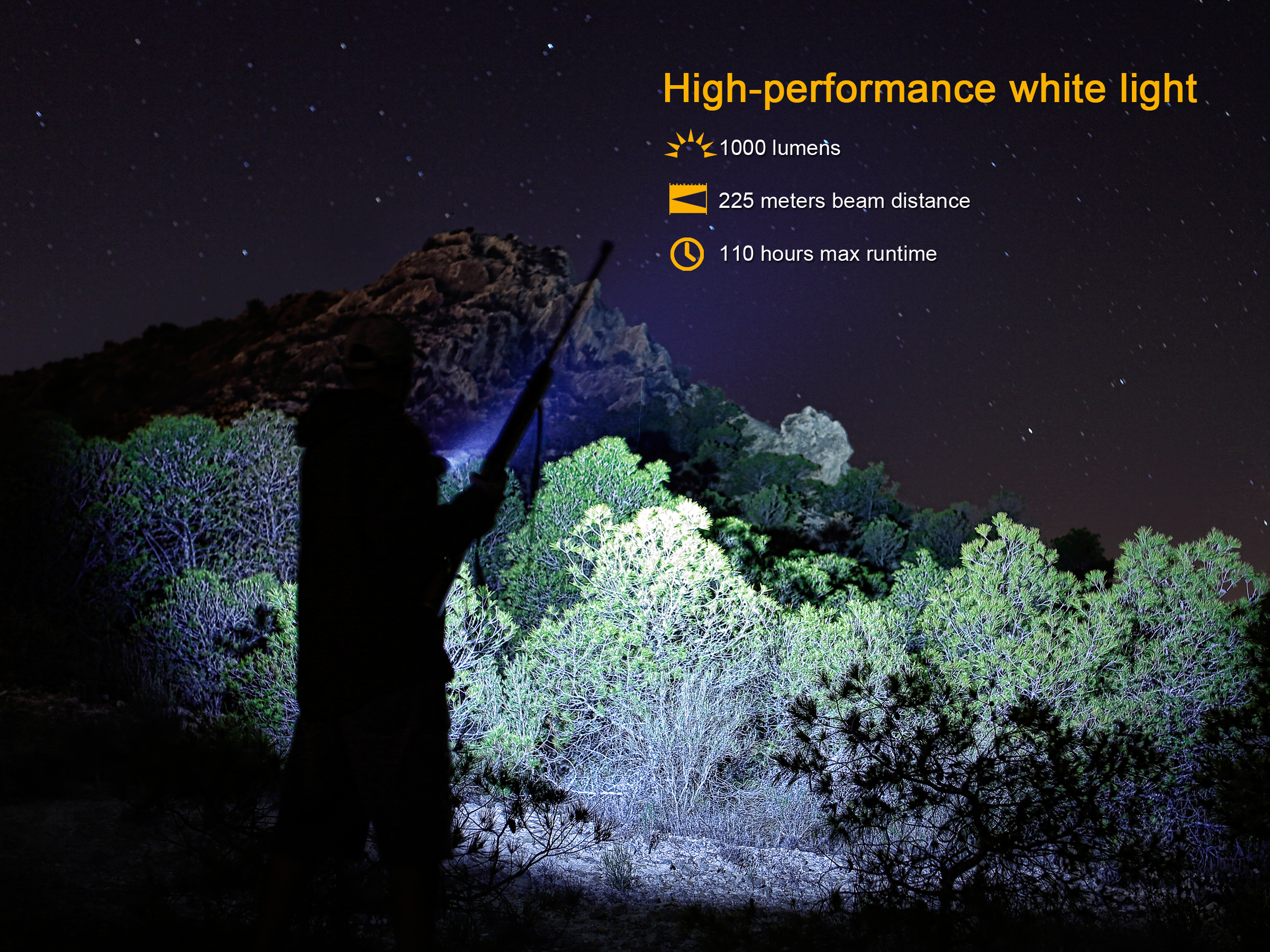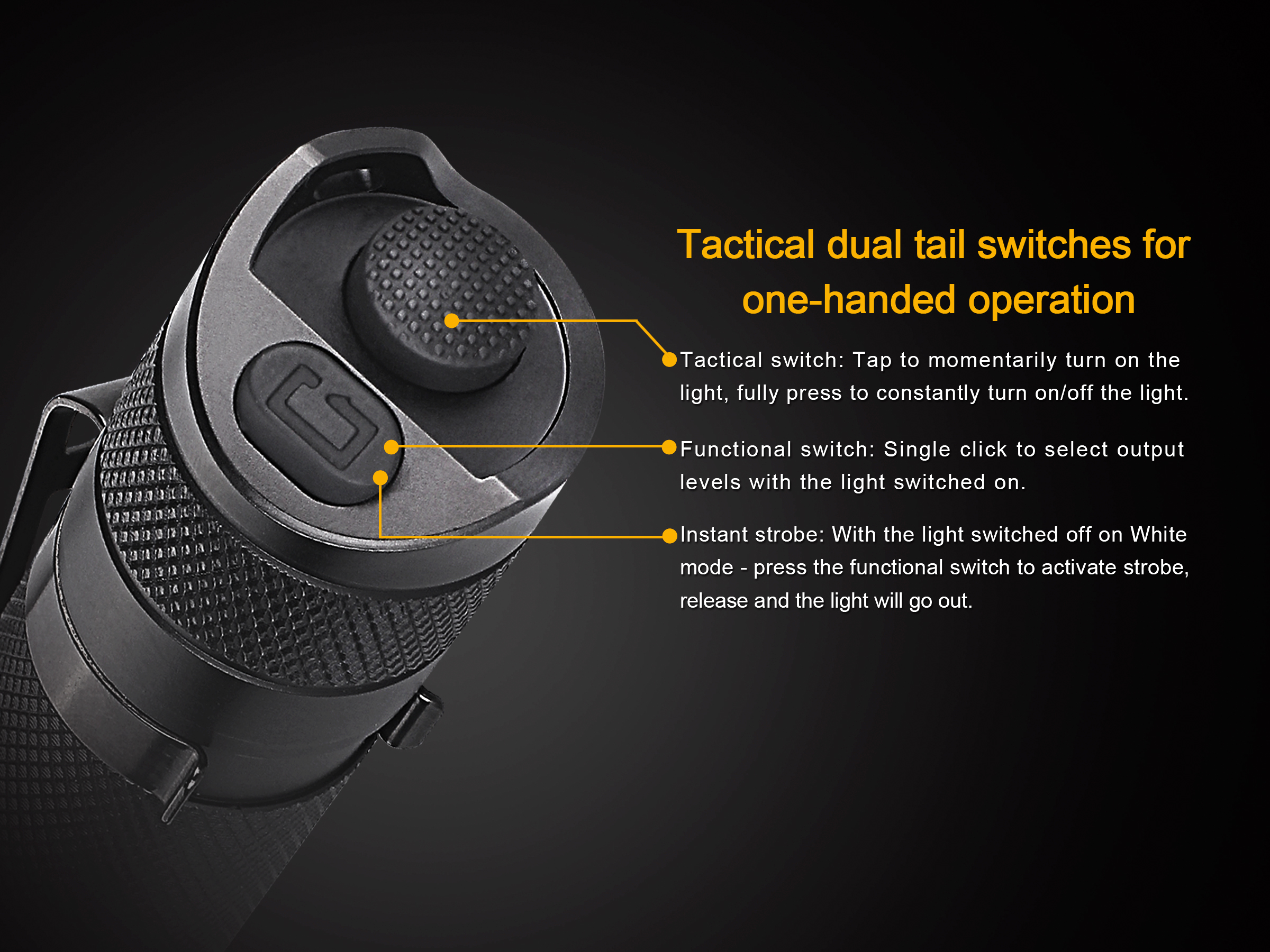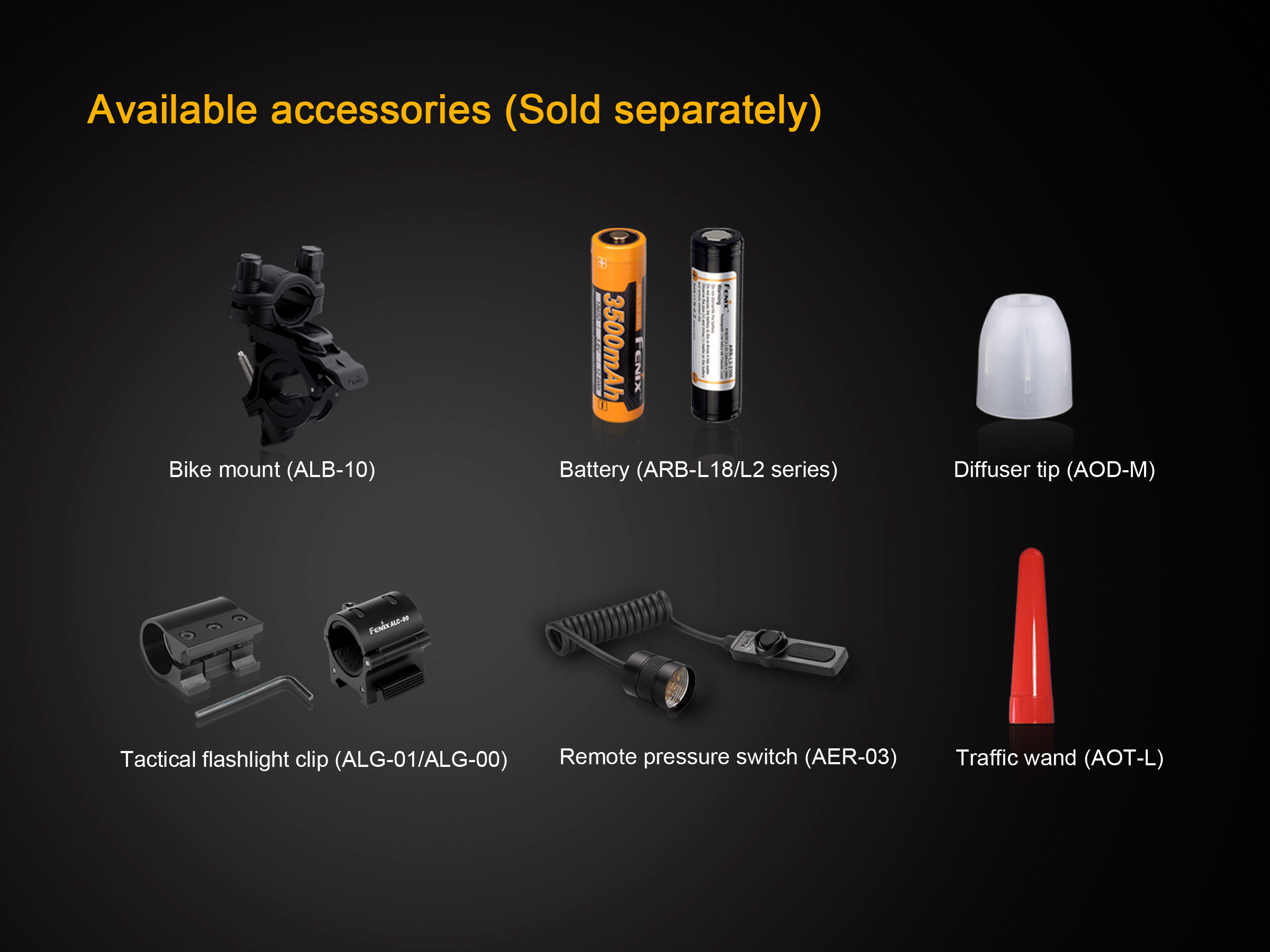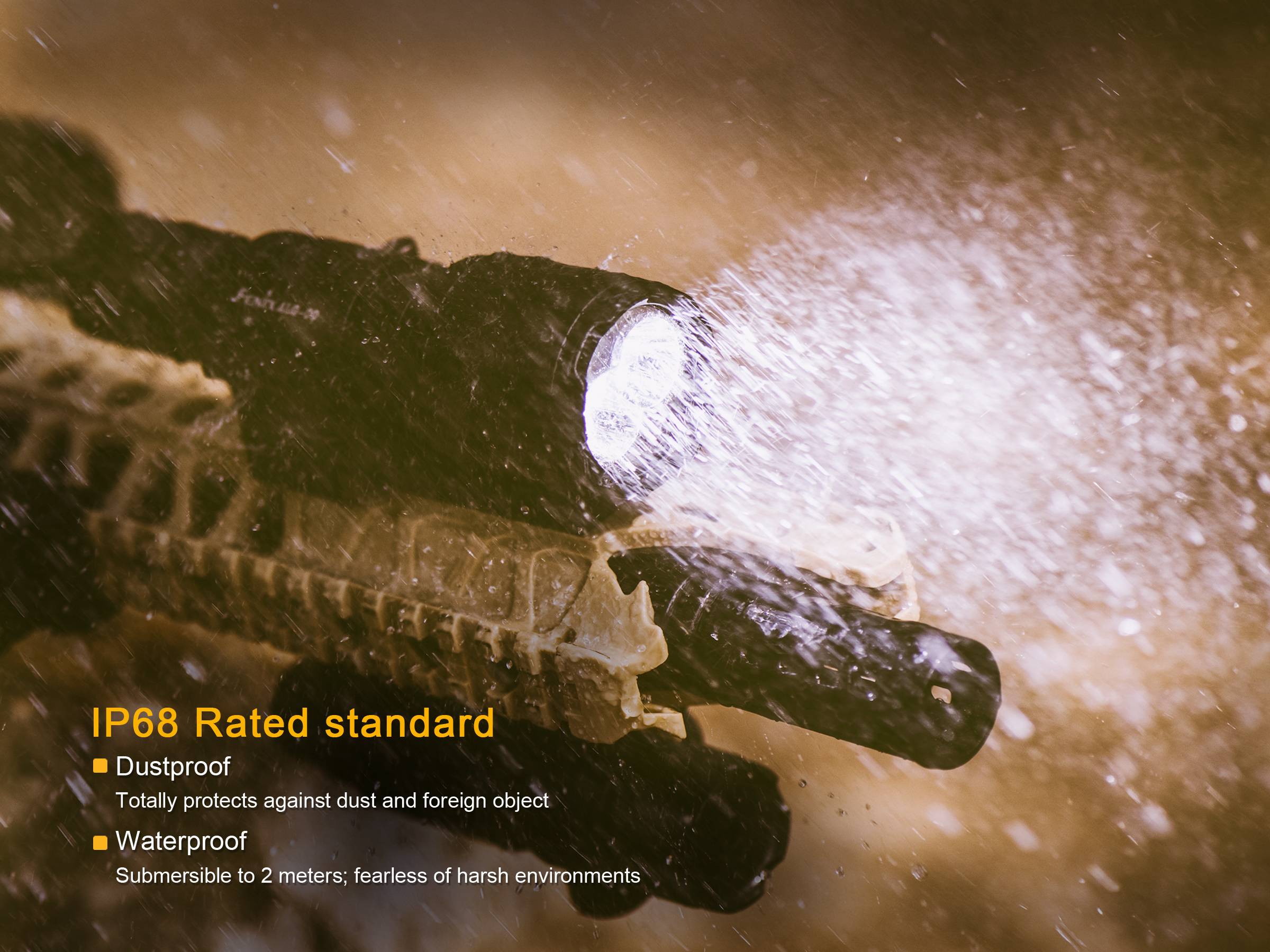 Hinweis: Die zuvor genannten Werte wurden im Labor unter der Verwendung von zwei Fenix ARB-L18-3500 - 18650 LiIon Akkus mit 3500mAh ermittelt und können zwischen Taschenlampe, Batterien / Akkus und Umgebung abweichen.