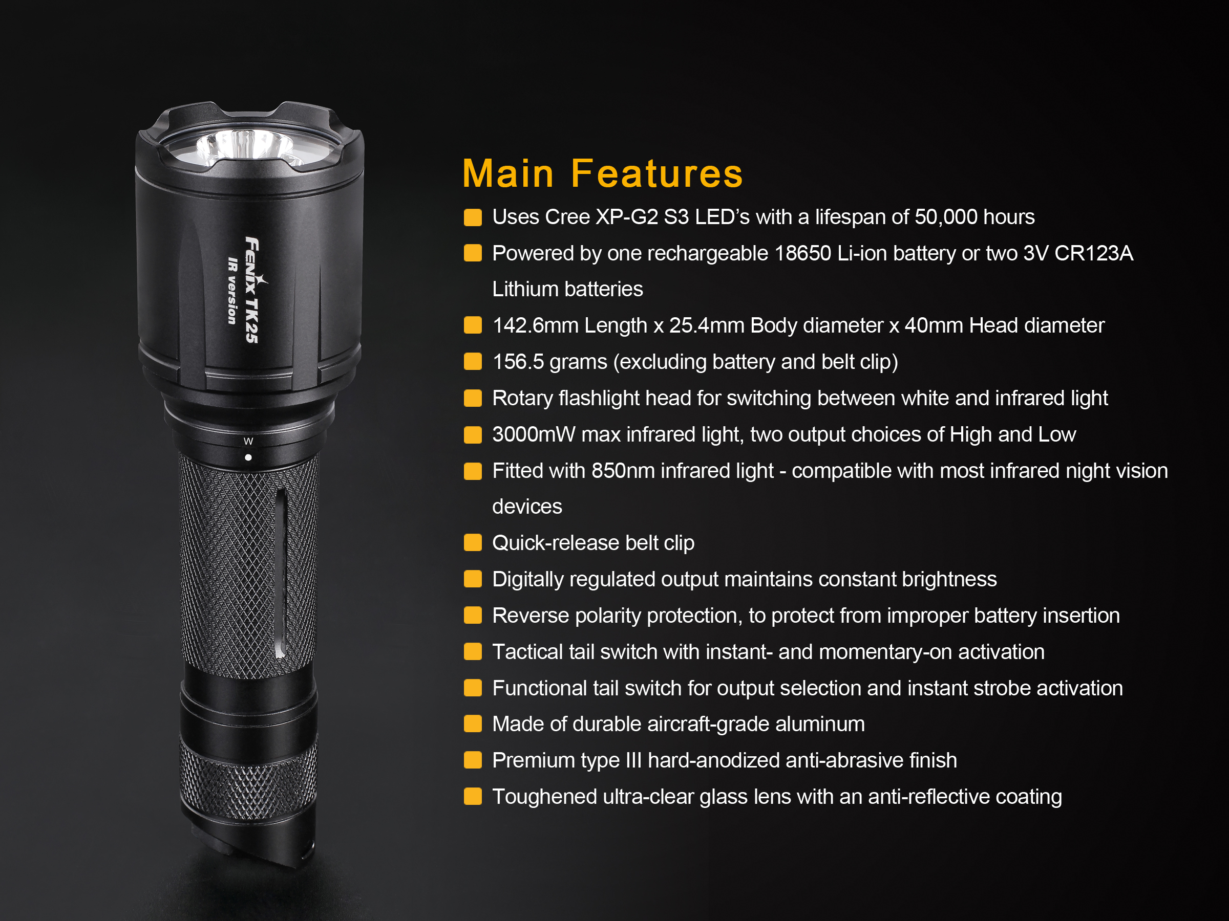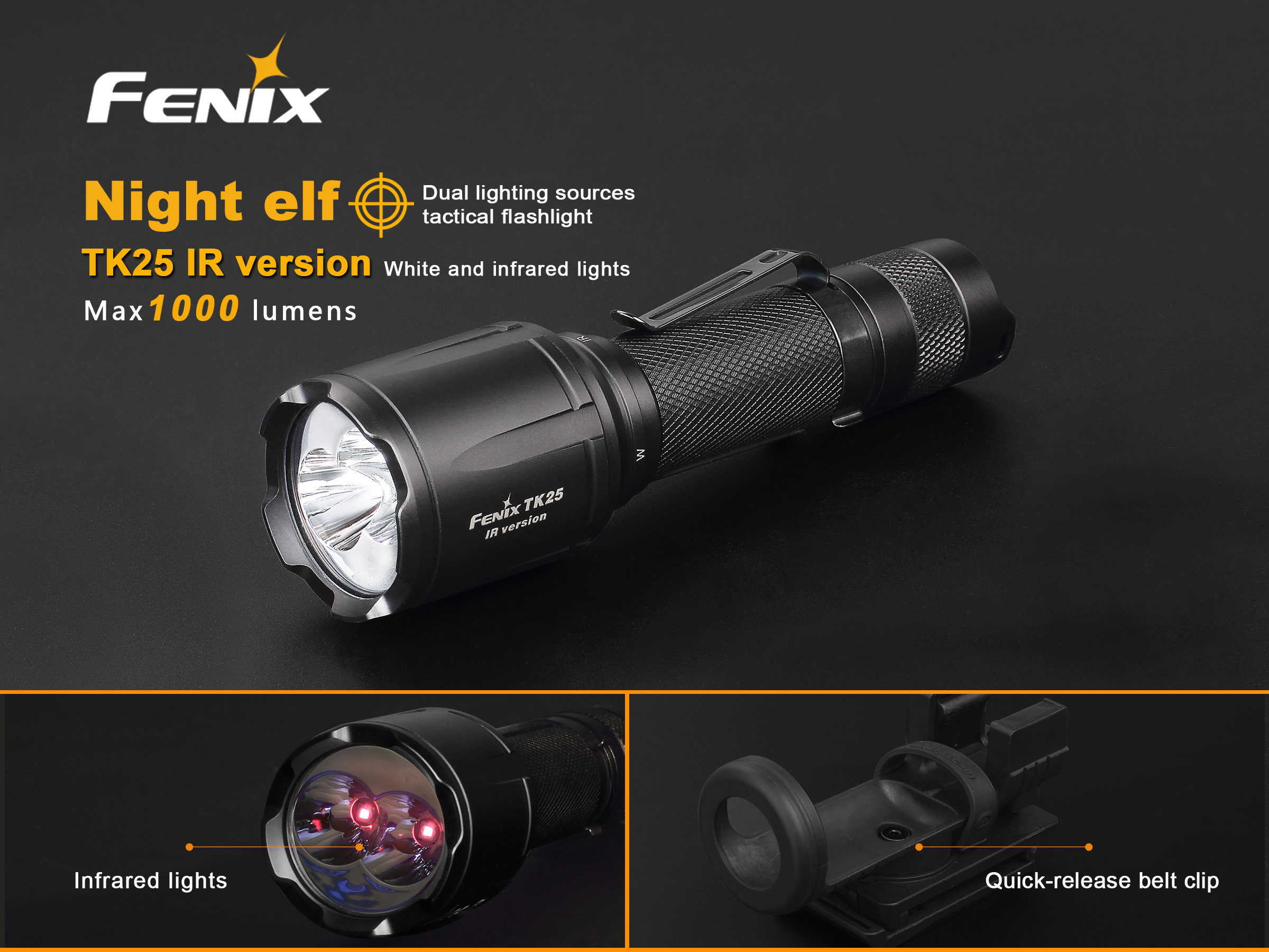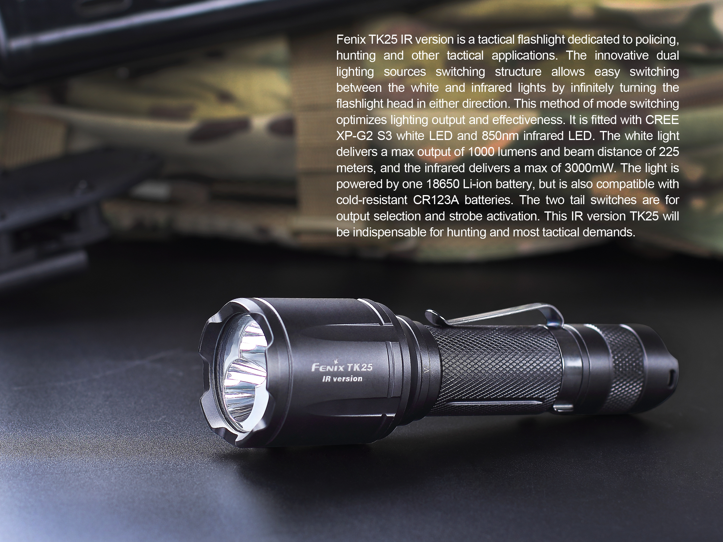 Fenix TK25IR, Taschenlampe mit Infrarot 850nm, XP-G2 S3 LED, 1000 Lumen, 2x CR123A Batterie