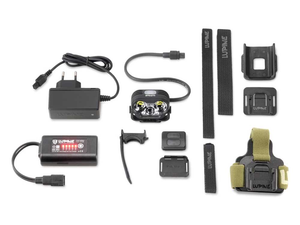 Sie haben nun folgende Möglichkeiten:Die Lupine Blika All-in-One mit 2400 Lumen im Set als Helm- und Stirnlampe. Das Lupine Blika All-in-One Set umfasst neben dem Blika Lampenkopf ein Stirnband, Helmhalter, Akku, Bluetooth Fernbedienung, Ladegerät und Anleitung. Durch das FrontClick System kann der Lampenkopf schnell vom Stirnband auf den Helm (mit Lüftungsschlitzen) und wieder zurück gebaut werden. Der 3.5 Ah SmartCore Akku wird per FastClick System direkt am Stirnband bzw Helm getragen, zeigt auf Knopfdruck die verbleibende Restkapazität an und dient zusätzlich als Signallicht. Kabellänge am Lampenkopf ca. 25cm.