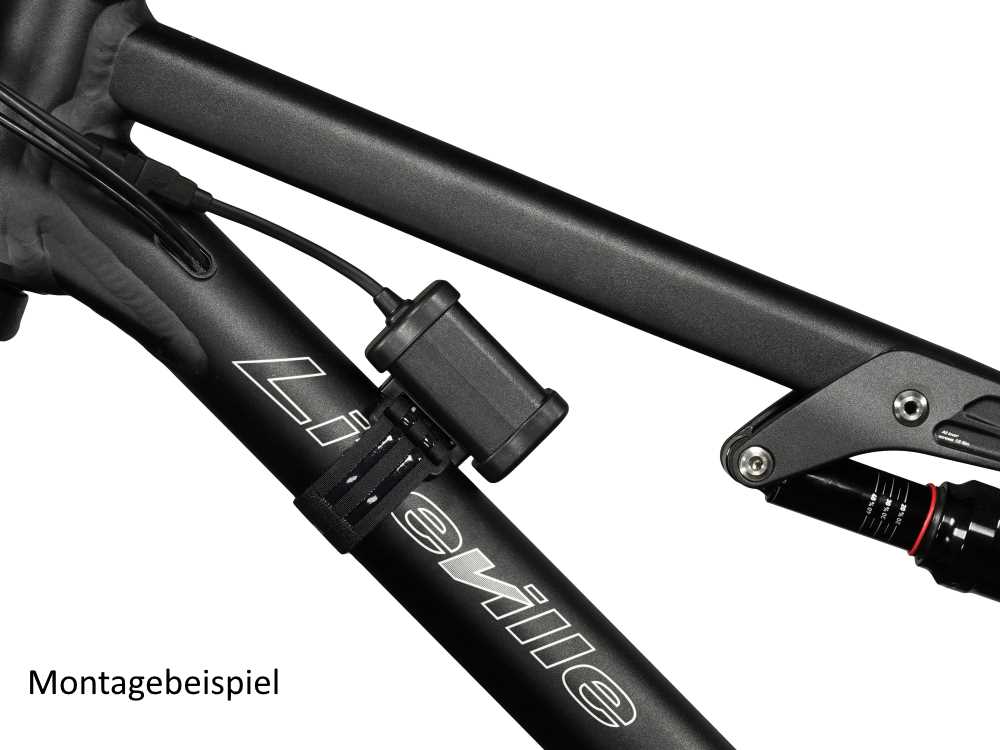 - Akkuhalterung: 6.9 Ah mit Verlängerung, mit Klettband, mit Klettband am Rahmen, mit Klettband oder im Trikot bzw. Rucksack