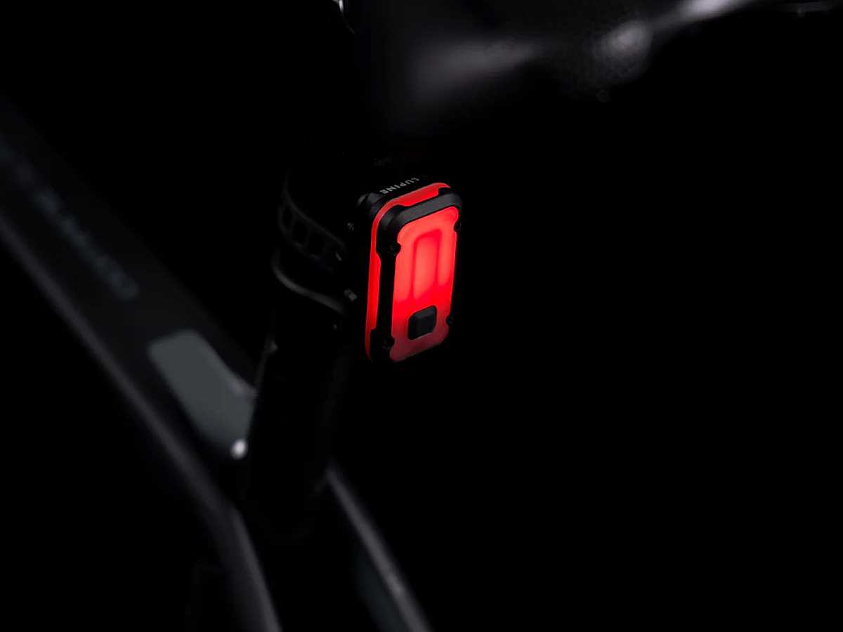 Natürlich verfügt das Lupine Rotlicht Pro auch über smarte Sensoren, die die Handhabung deutlich vereinfachen und die Sicherheit optimieren. Der integrierte Bremslichtsensor sorgt dafür, dass beim Verzögern oder Stoppen des Bikes die Helligkeit schlagartig erhöht wird, genau wie bei Autos oder Motorrädern. Für das automatische Einschalten des Rücklichts ist ein Helligkeitssensor verbaut, der erkennt, wenn die Dunkelheit einsetzt. Dann schaltet sich das Lupine Rotlicht Pro automatisch ein.