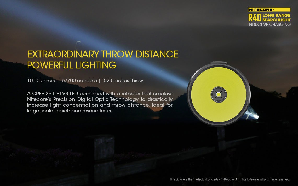 Nitecore R40 - Wiederaufladbare LED Taschenlampe, 1000 Lumen, Ladestation, Akku