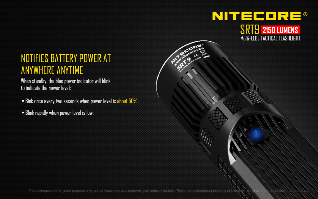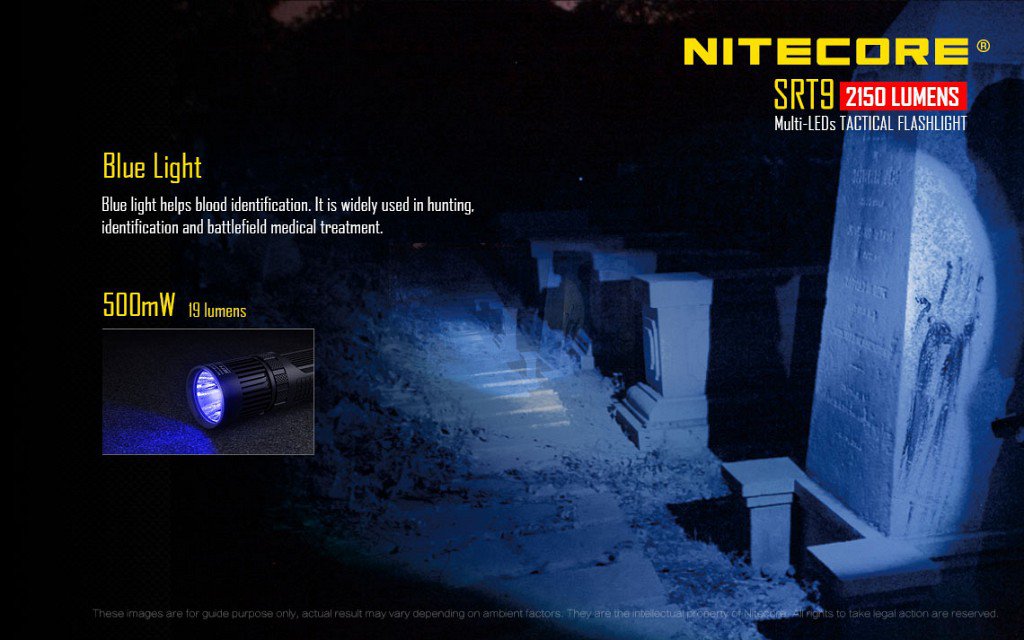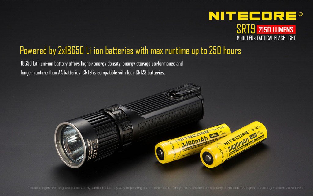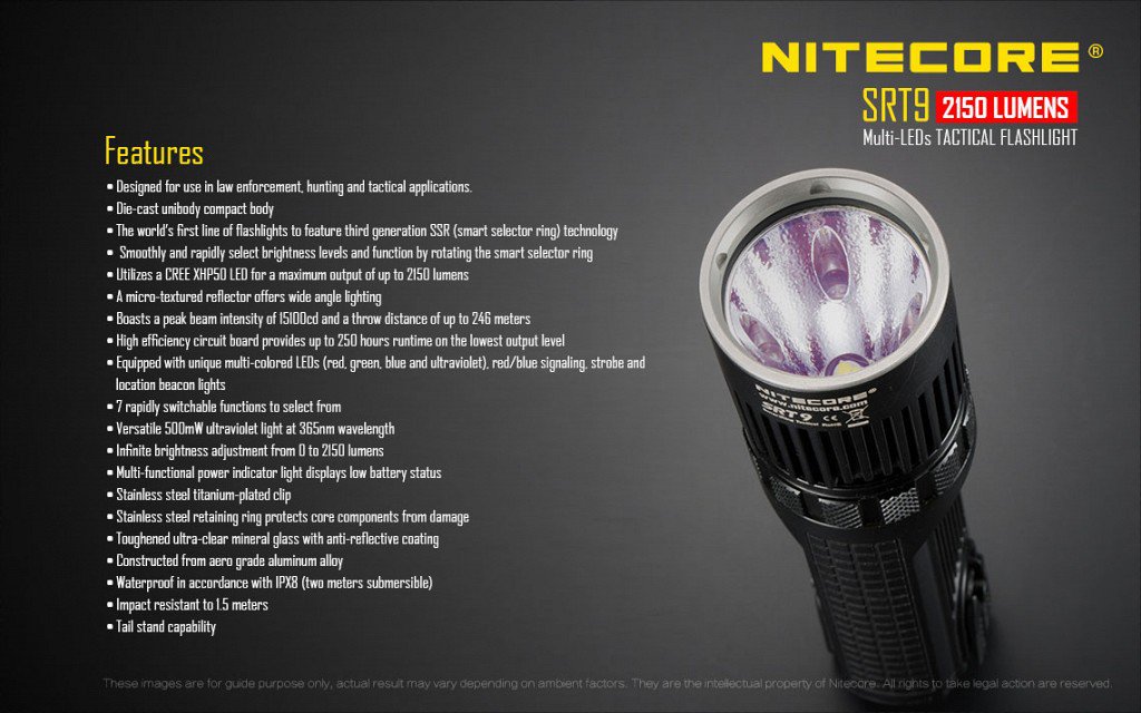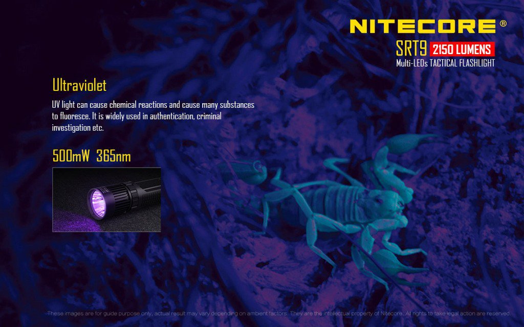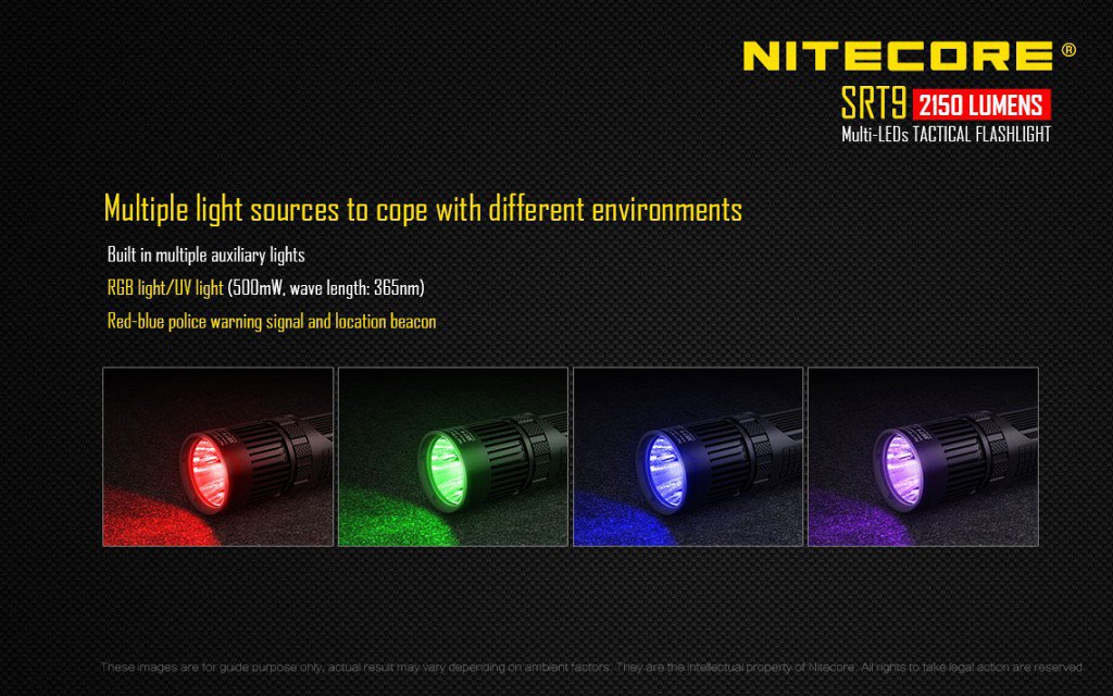 Nitecore SRT9 - LED Taschenlampe mit 2150 Lumen, Farb-LEDs, UV-Licht, inkl. 4x CR123A Batterie