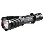 Sie haben nun folgende Möglichkeiten:Die taktische Taschenlampe Olight M22 Warrior X wird mittels Druckschalter, der sich in der Endkappe des Batteriefachdeckels befindet bedient. Die 3 Leuchtstufen werden durch eine kurze Drehbewegung (vor und zurück) am Lampenkopf gewechselt. In der Olight M22 Warrior X arbeitet eine Hochleistungs Cree XM-L2 LED. In der leistungsstärksten Stufe sind das satte 950 Lumen Power, in der mittleren 250 Lumen und 20 Lumen im Sparbetrieb. Im sparsamen Modus kann die moderne Lampe ganze 30 Stunden im Dauerbetrieb eingesetzt werden. Für taktische Einsatzzwecke der Polizei und Sicherheitskräfte steht ein Stroboskop Modus zur Verfügung, dieser wird durch dreimaliges drücken des Endkappenschalters eingeschaltet. Die zuletzt gewählte Leuchtstufe bleibt beim aus- und wiedereinschalten erhalten. Die Spezielle Aluminiumkonstruktion ist nicht nur wasserresistent, der speziell geformte Lampenkopf dient gleichzeitig als Kühlkörper, um die Wärmeentwicklung der Power von 950 Lumen optimal abführen zu können.