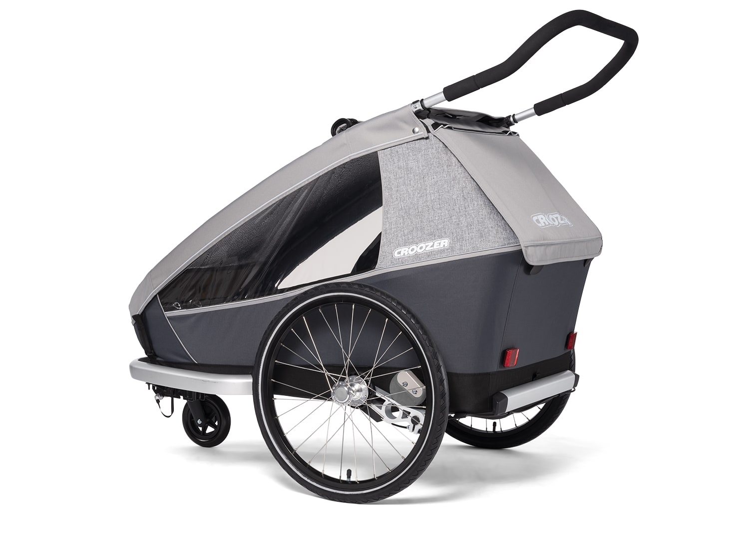 Croozer Kid Keeke 2, Stone grey - Kinderfahrradanhänger mit Federung, Fahrrad-Set, Buggy-Set und LED Licht