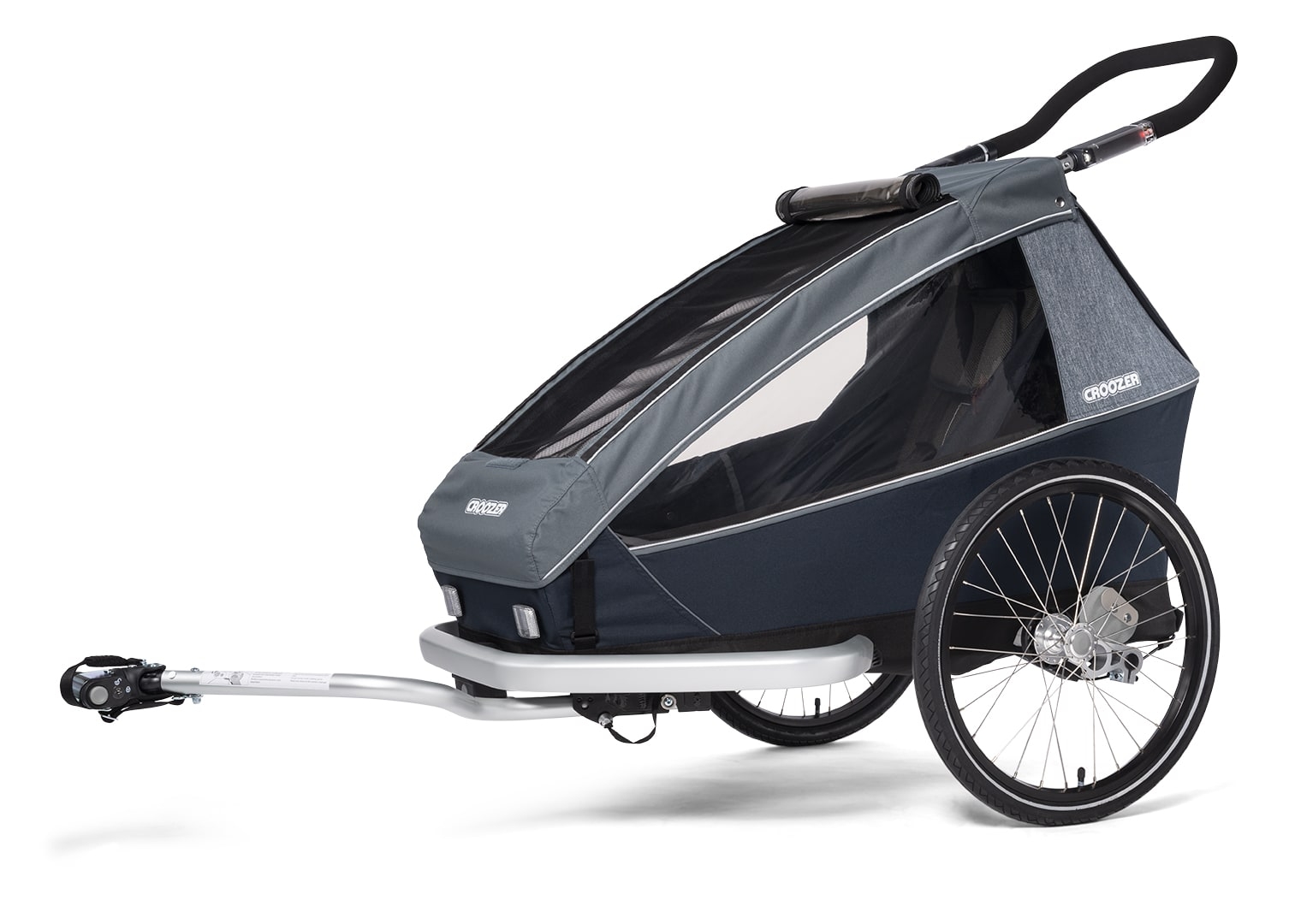 Croozer Kid Vaaya 1, Graphite blue - Kinderfahrradanhänger mit Federung, Fahrrad-Set, Buggy-Set und Sensorlicht