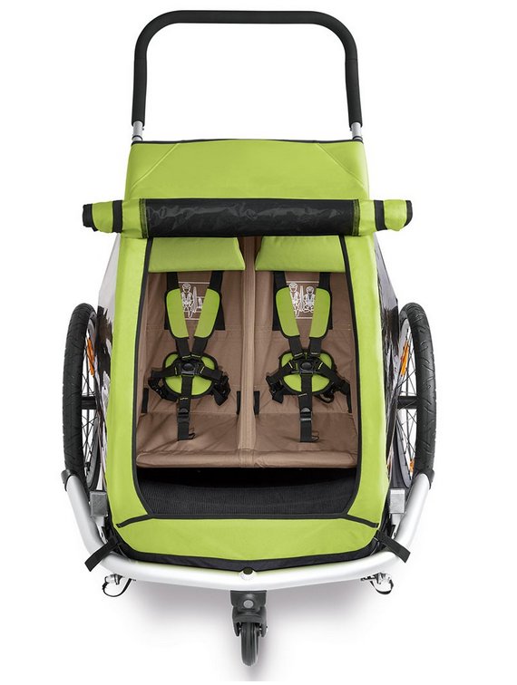 Der Croozer Kid for 2 (Modell 2016) ist ein Kinderfahrradanhänger für zwei Kinder. Der Croozer Kinderanhänger ist mit allen Sicherheitsmerkmalen für Ihr Kind ausgestattet: Sicherheits-Fahrgastzelle, Stoßstange, Überrollbügel und 5 Punkt Sicherheitsgurt. Mit dem optionalen Babysitz (Hängematte) können Sie Ihr Kleines ab dem 1. Monat mitnehmen. Im Lieferumfang des Kid for 2 sind zwei Fahrrad-Kupplungen und das Fahrradset um ihn an zwei Fahrräder nutzen zu können. Ein Buggyset um Ihn als normalen Buggy als Fußgänger und den Einkauf zu nutzen. Und ein Joggerset für die Sportlichen Aktivitäten oder für das unwegsame Gelände beim Wandern oder Tracking.