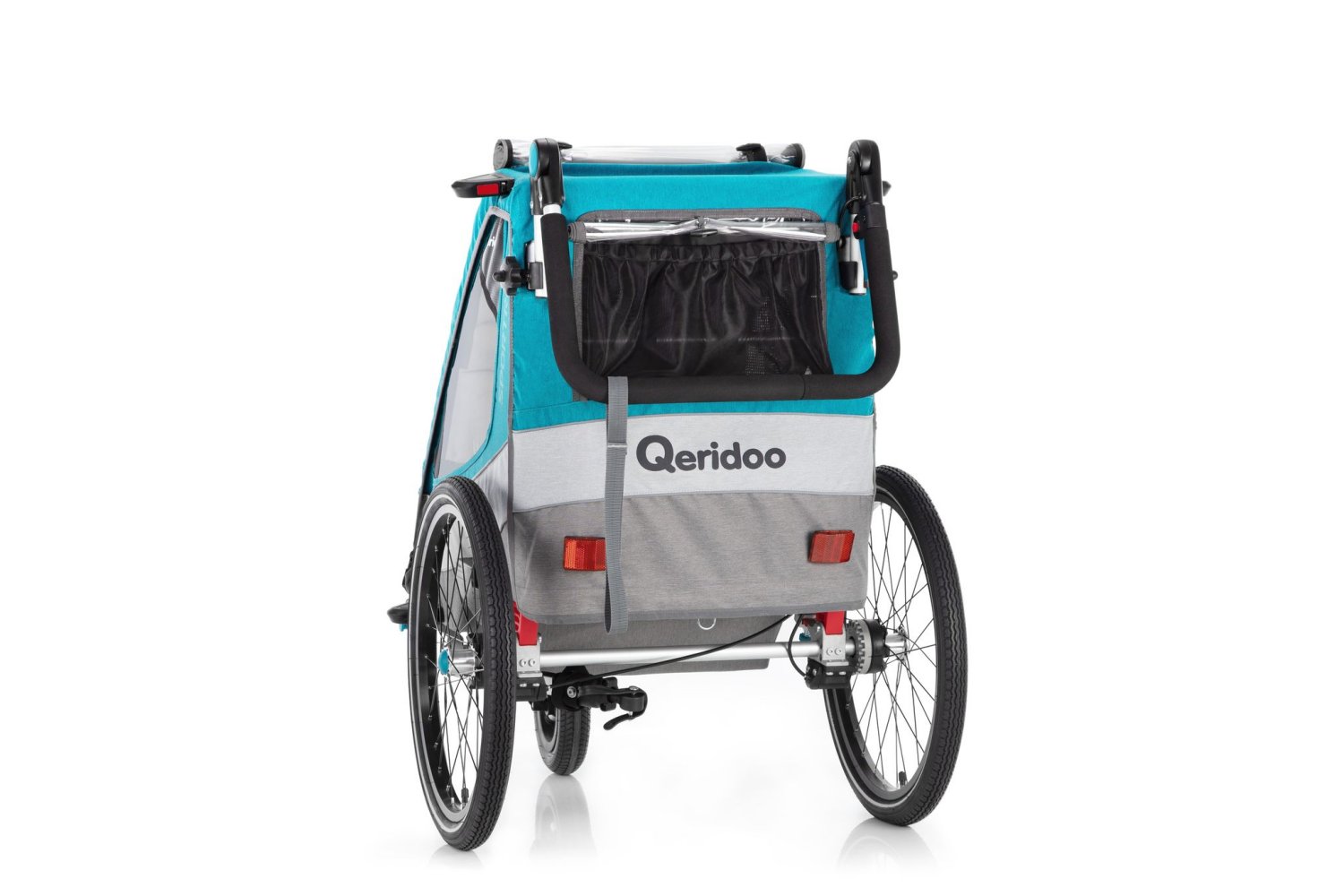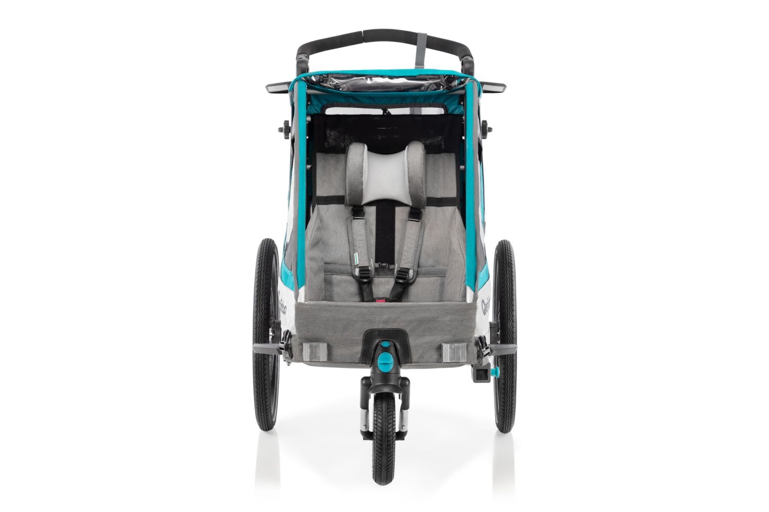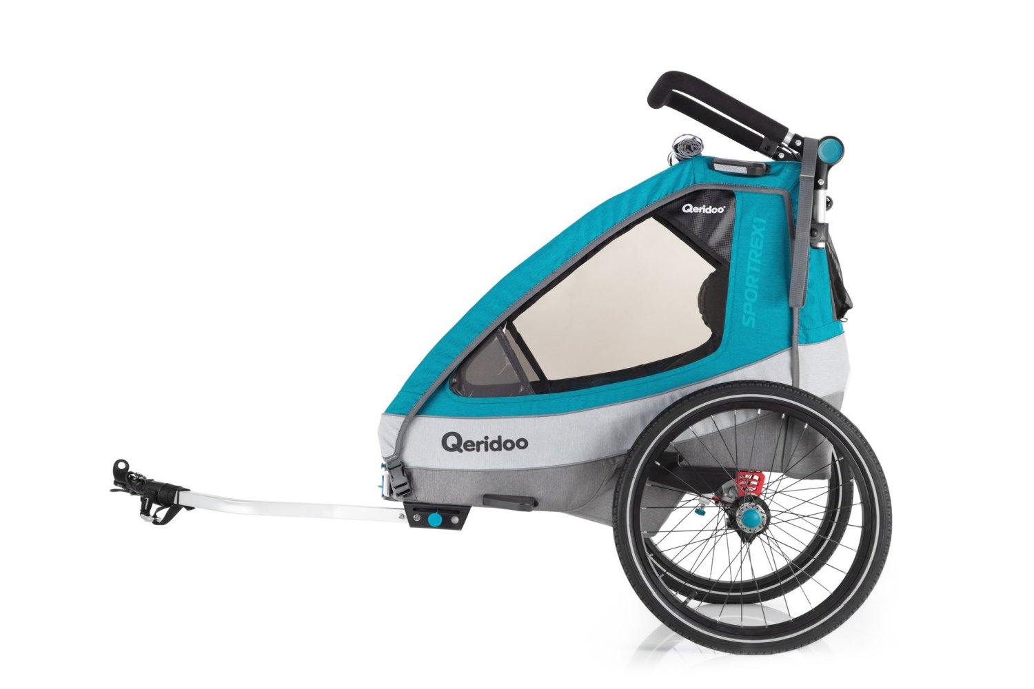 Qeridoo Sportrex1 Q-SR1-21-P petrol - Kinderfahrradanhänger mit Federung, Hand-Parkbremse und Buggyrad