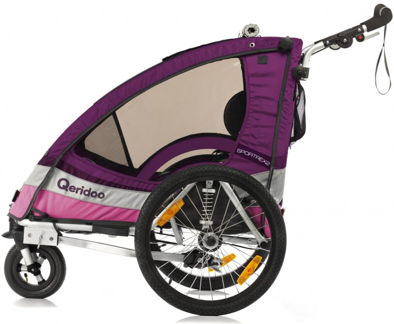 Qeridoo Sportrex2 2017 violett - Kinderfahrradanhänger mit Federung, Feststellbremse und Buggyrad mit Jogger-Funktion