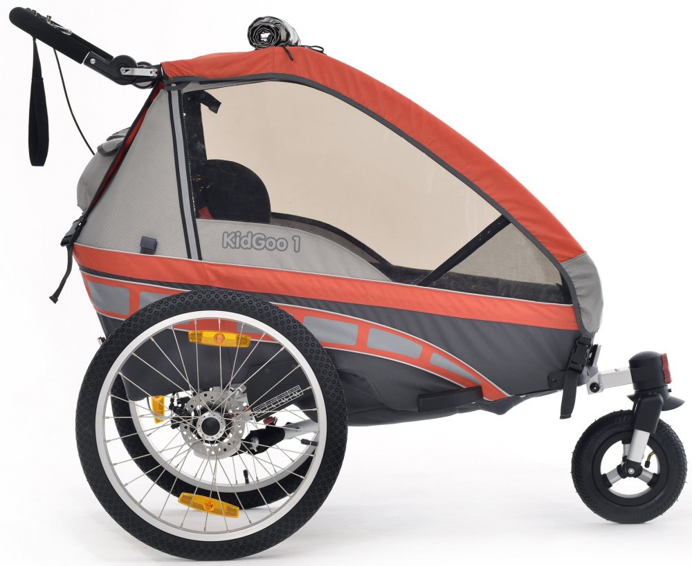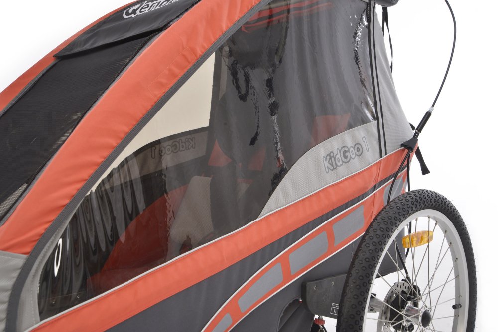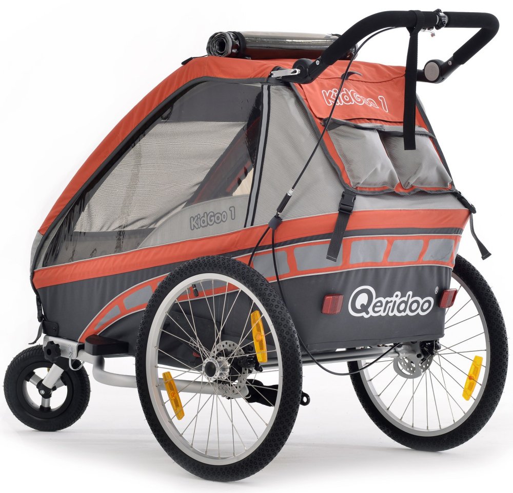 Der Qeridoo KidGoo-1 ist ein Kinderfahrradanhänger für ein Kind. Der Anhänger ist mit einer einstellbaren Blattfederung und Scheibenbremsen ausgestattet. Die Fahrradkupplung und ein Buggyrad mit Jogger-Funktion gehören zum Lieferumfang. Das FX- Klappsystem ermöglicht ein einfaches Zusammenfalten des Qeridoo KidGoo-1 mit nur einer Handbewegung. Ein Augenmerk wurde auf den Transport von Säuglingen gelegt. Mit dem optionalen Adapter ist es möglich eine Qeridoo oder eine Maxi-Cosi Autokindersitzschale in den KidGoo 1 mit einzubauen um die größtmögliche Sicherheit der -Kleinen- zu gewährleisten.