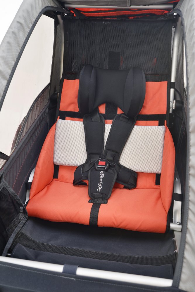 • Gepolsterte 5-Punkt-Sicherheitsgurte mit Schlosssystem, das ein schnelles Ein- und Aussteigen ermöglicht. Gurtsystem für Kinder gemäß ECE 44/03 und §67 StVZO