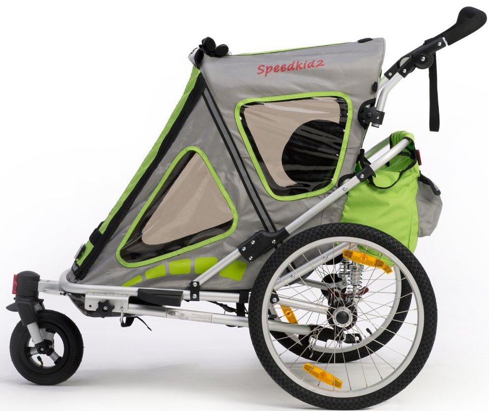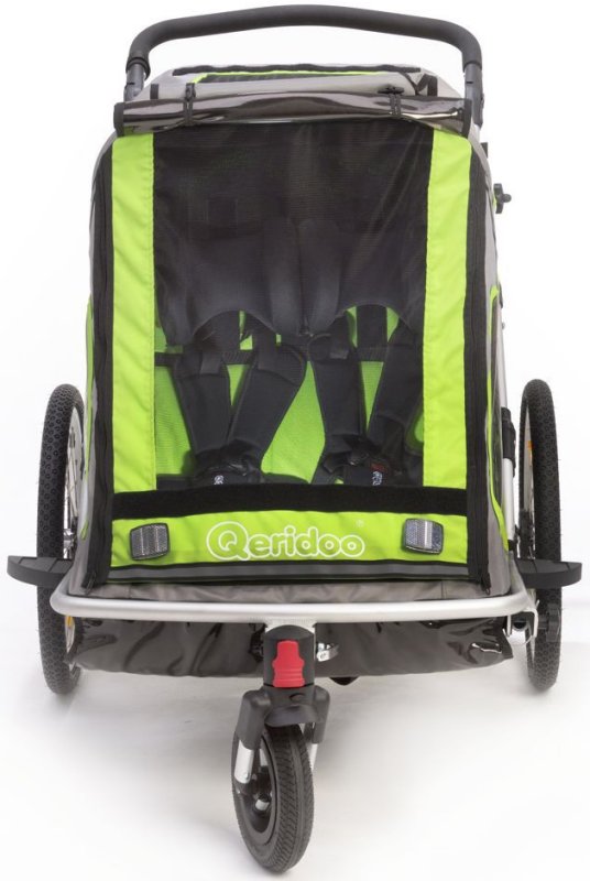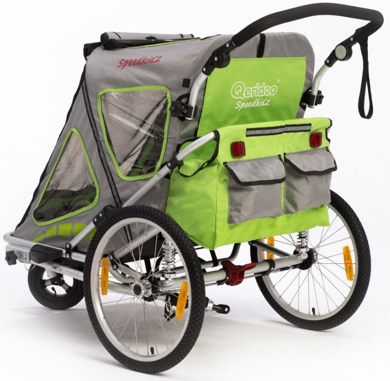 Der Qeridoo Speedkid2 2016 ist ein Kinderfahrradanhänger für ein oder zwei Kinder. Der leichte Aluminium-Fahrradanhänger hat ein sehr kleines Packmaße (25x71x89cm) und passt damit in jeden PKW Kofferraum. Der Anhänger ist mit einer einstellbaren Sprungfederung und Feststellbremse ausgestattet. Die Fahrradkupplung und ein Buggyrad mit Jogger-Funktion gehören zum Lieferumfang. Das FX- Klappsystem ermöglicht ein einfaches Zusammenfalten des Qeridoo Speedkid2 2016 mit nur einer Handbewegung. Der Leichte und sichere Qeridoo Speedkid2 2016 kann man dank des großem Lieferumfangs als Babyjogger, Kinderwagen oder Fahrradanhänger nutzen.