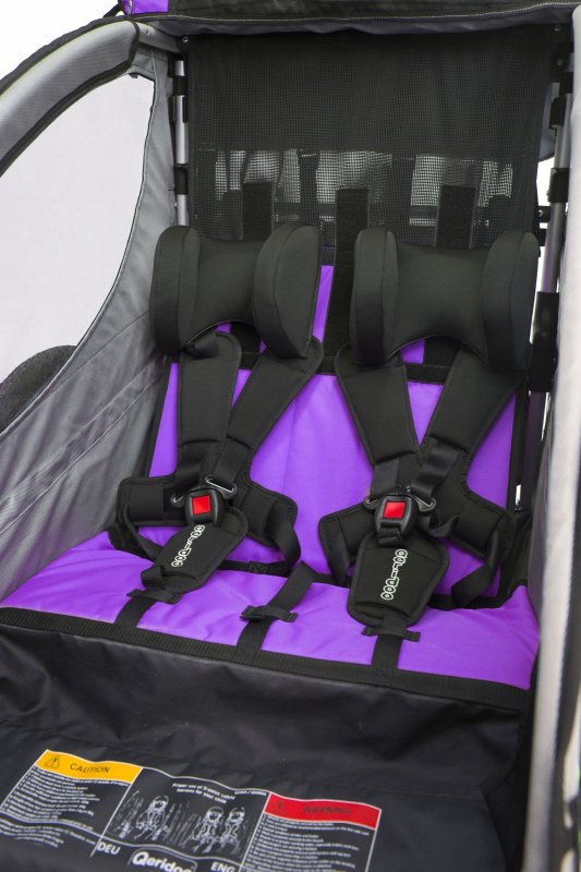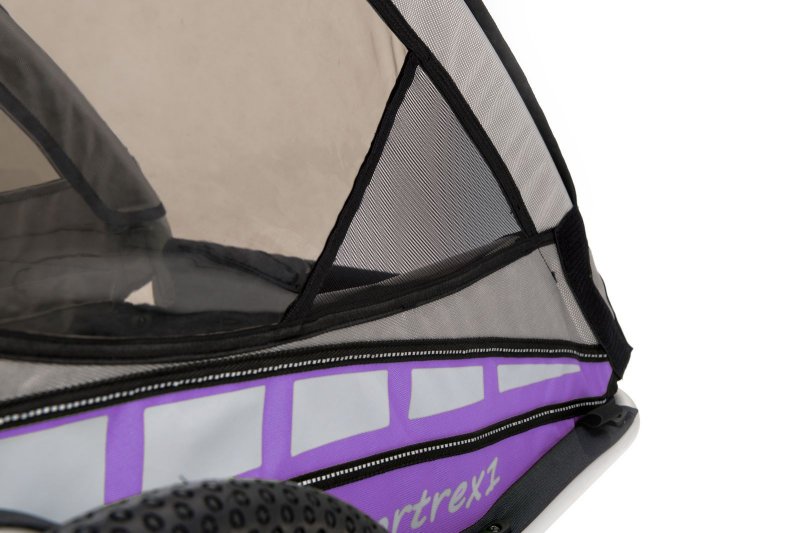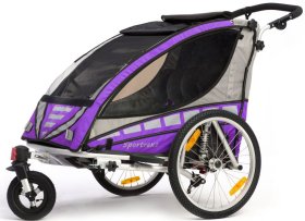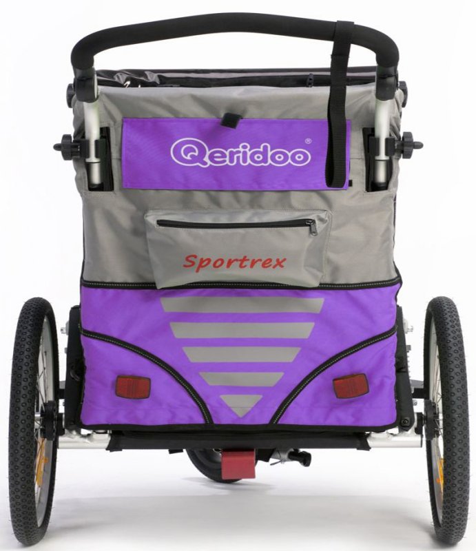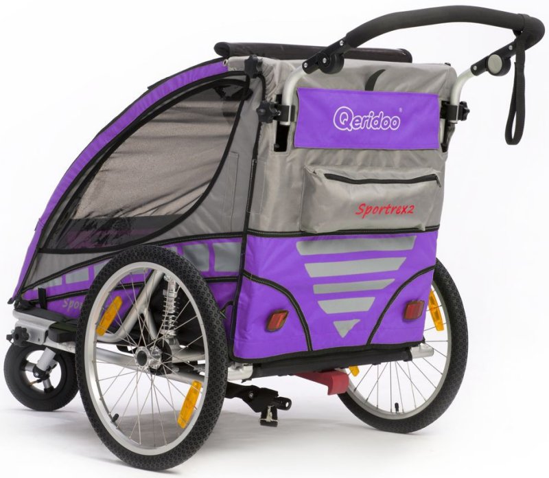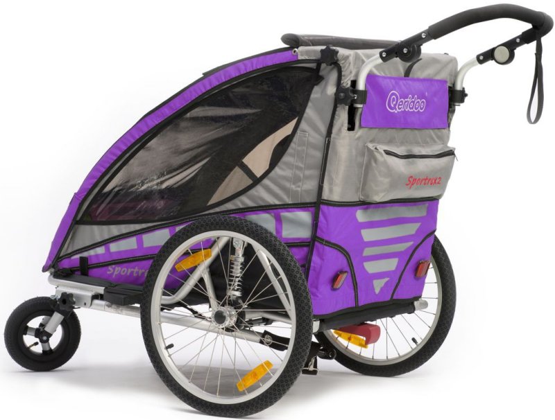 Qeridoo Sportrex2 2016 violett - Kinderfahrradanhänger mit Federung, Feststellbremse und Buggyrad mit Jogger-Funktion