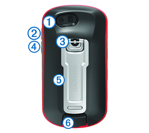 Der Garmin Oregon 7xx verfügt auf der Rückseite (Akkudeckel) über eine Schienen-Aufnahme für optionale Halterungen. Beispiel bei Verwendung des im Lieferumfang befindlichen Garmin Karabiner Clip