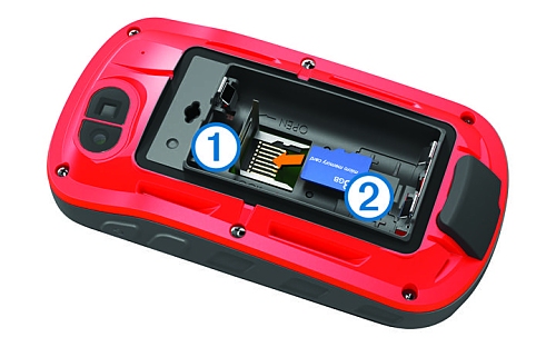- Legen Sie den Garmin NiMH Akku ein, und achten Sie dabei auf die korrekte Ausrichtung der Pole.