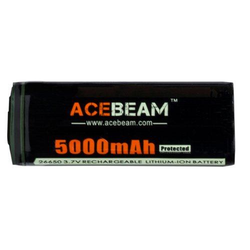 - 1x Acebeam ARC26650NP-500A, 5000mAh, 3,7V, 12A Lithium Ionen Akku (Button Top)