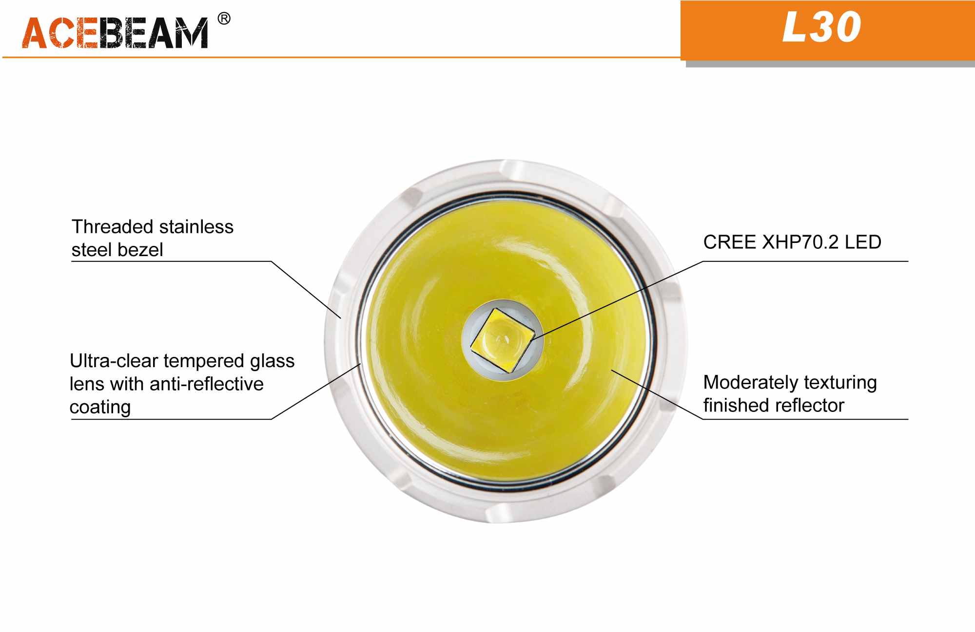 Acebeam L30 nw - Wiederaufladbare LED Taschenlampe, 4000 Lumen, CREE XHP70.2 LED, 5000K