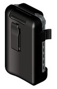 Die Gürtelhalterung aus hochschlagfestem ABS-Kunststoff umschließt die Displayseite des PDA. So ist auch diese beim Transport verdeckt.