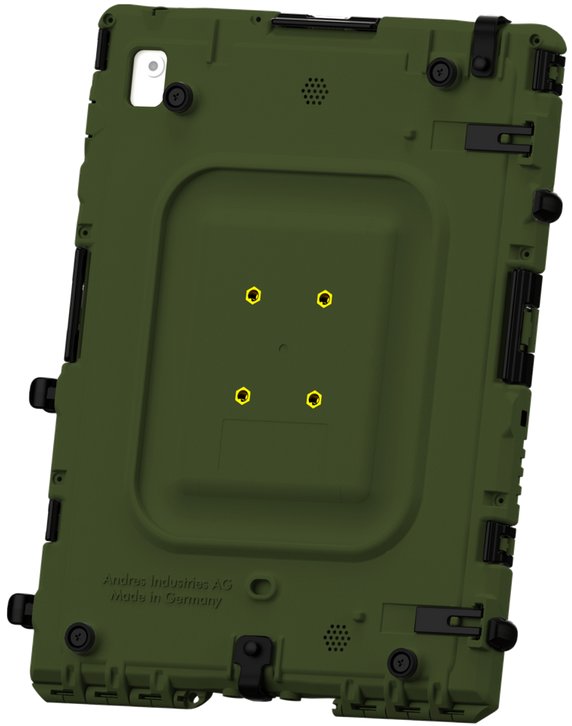 Dieses Modell verfügt zusätzlich zu der standardmäßigen RAM-Kompatibilität nun auch über verschraubbare Gummifüße an der Rückseite sowie seitliche Anti-Rutsch-Füße und eine für den Apple-Pencil ausgelegte Stifthalterung, die sich beliebig anbringen und austauschen lassen.