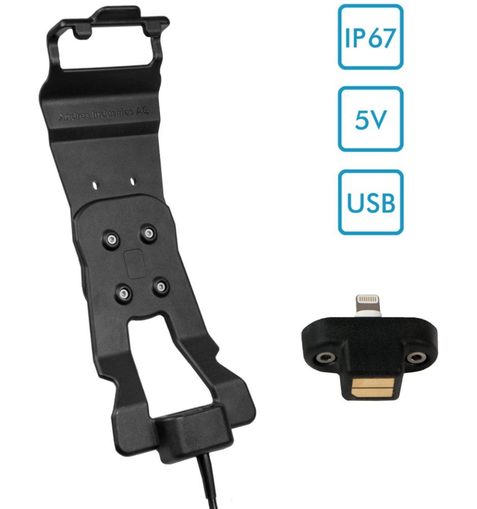Das aiShell Car Cradle mit Car Cradle Lade Connector ist die professionellste Lade- und Befestigungslösung für das aiShell 10 Schutzgehäuse. Sie ist besonders für Anwender geeignet, die das aiShell Gehäuse mehrmals am Tag in eine Halterung stecken müssen, in der es auch gleich geladen werden kann. Dies ist z.B. für Lieferfahrer und Wartungspersonal aber auch für Rettungsdienste wichtig. Es dauert nur Sekunden, um das Schutzgehäuse in das aiShell Car Cradle einzulegen oder es heraus zu nehmen. Bei Versionen mit Car Cradle Lade Connector beginnt der Ladevorgang automatisch und endet nachdem der Akku geladen ist. Statt eines normalen Lightningkabels oder des aiShell Lade Connectors wird zum Laden der wasserdichte aiShell Car Cradle Lade Connector am Fuß des Schutzgehäuses befestigt. Er wird dort dauerhaft mit zwei Schrauben angebracht. Auf seiner Unterseite besitzt er zwei hartvergoldete Kontaktflächen. Nach dem Einstecken des aiShell 10 in das Car Cradle wird das iPade hierüber geladen.