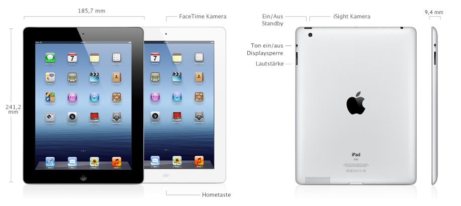 - Apple iPad 3. Generation, WiFi + 4G, 16GB, schwarz