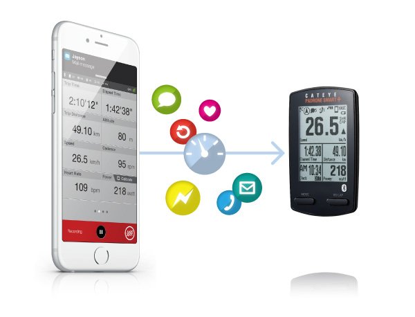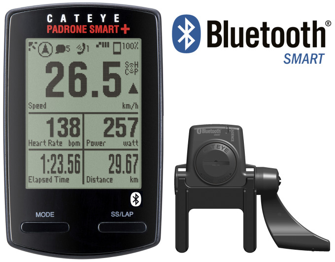 Sie haben nun folgende Möglichkeiten:Der Cateye Padrone Smart+ CC-SC100B + Trittfrequenzsensor wird über die CATEYE Cycling App mit einem kompatiblen Smartphone verbunden. Ist der Padrone Smart am Cockpit montiert, kann das Smartphone sicher in der Trikottasche, Rucksack oder Satteltasche verstaut werden. Das Smartphone bleibt im Ruhemodus und spart dadurch Energie. Die Matrixanzeige des Cateye Padrone Smart+ hat verschiedene anpassbare Databildschirme, Pfeilnavigation, Steigung- und Runden-Funktionen und noch einige Features mehr, die dein Fahrerlebnis verbessern. Zeichne deine Fahrten im Spiegelmodus des Cateye Padrone Smart+ mit dem Handy-GPS oder direkt mit dem Bluetooth Smart Sensor auf. Mit beiden kannst du schnell und einfach Fahrdaten auf CatEyeAtlas, Strava und TrainingPeaks am Ende der Fahrt hochladen. PayPal, Messenger, SMS, Anrufe und E-Mail-Benachrichtigungen halten dich auf dem Laufenden, ohne dass du riskierst dein Handy kaputtzumachen oder der Akku verbraucht wird.