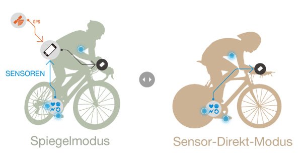 - Optionale Bluetooth SMART Sensoren nehmen Geschwindigkeit, Trittfrequenz, Puls und Leistung auf.