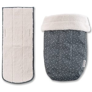 - Optional: Gefütterter, abnehmbarer Fußsack mit Reisverschluss und Sitzeinlage für den Babysitz als Kälteschutz