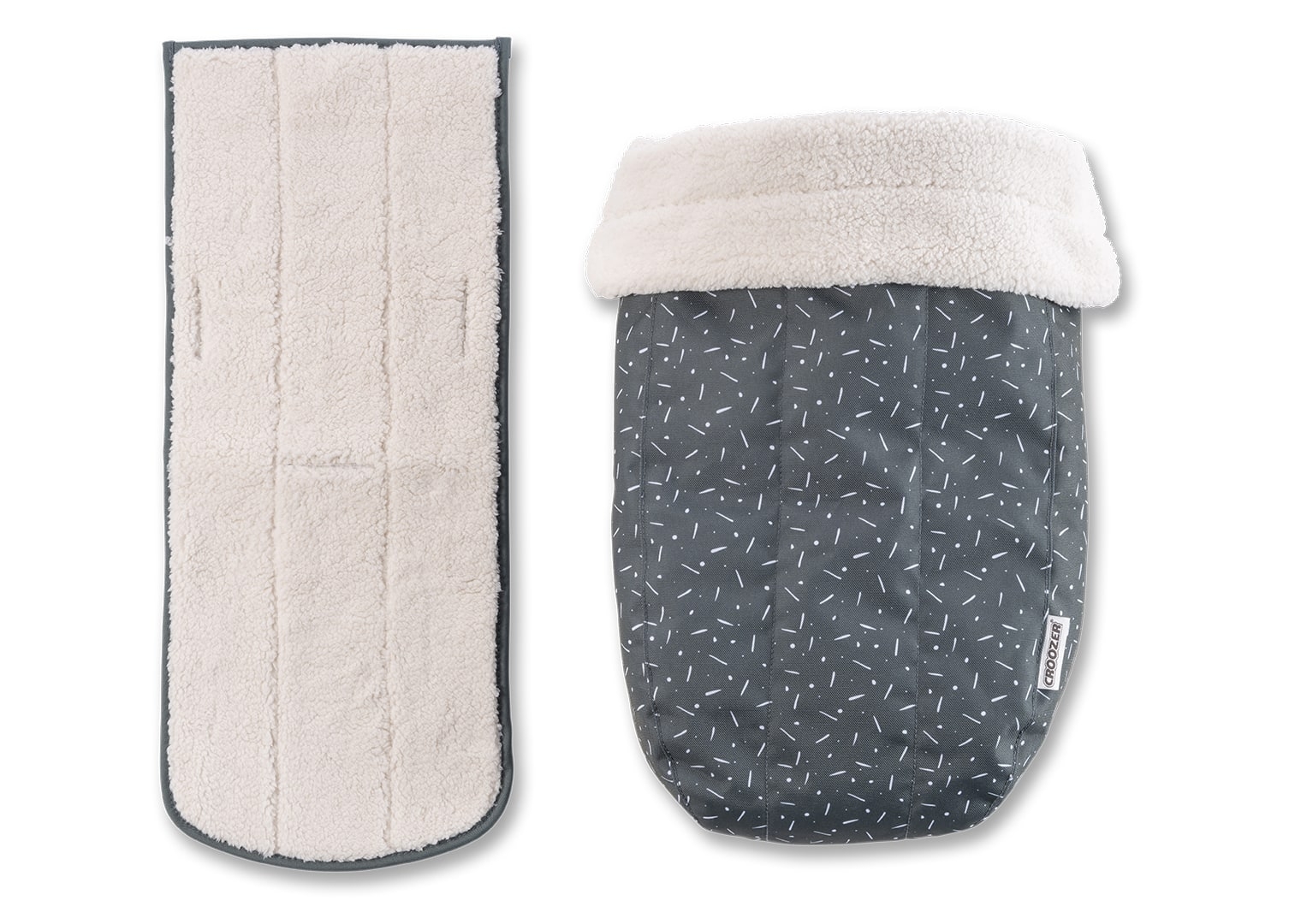 Der gefütterte Winterfußsack wird per Reißverschluss am Babysitz angebracht. Die Fleece-Sitzauflage sorgt für schützende Wärme von unten. Das kuschelige Winter-Set sorgen selbst bei Minusgraden für ein besonders kuscheliges Plätzchen.