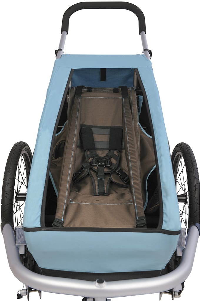 Bei Croozer fährt Nachwuchs im Babysitz geschützt von Abenteuer zu Abenteuer, geeignet bis 10 kg und einer Körpergröße von ca. 75 cm.