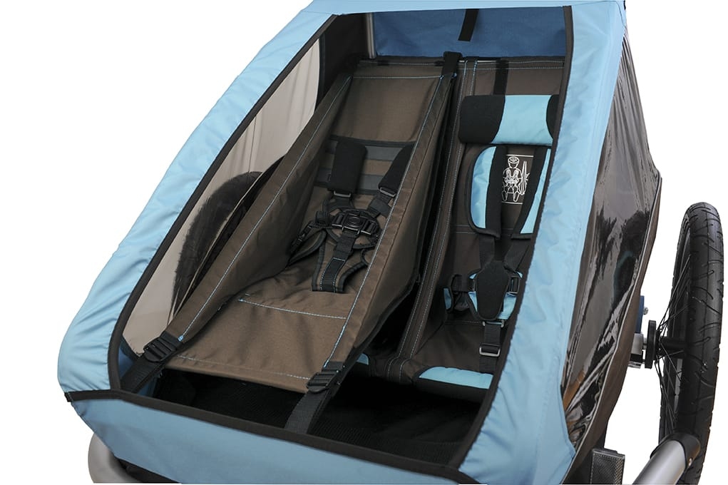 Die ergonomische Form des Babysitzes wurde speziell für eine ausgeglichene Liegeposition in Kinder-Fahrradanhängern entwickelt.
