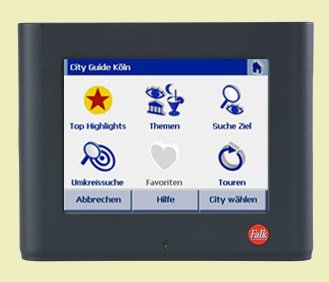 Navigator 5Neueste Softwaregeneration Falk Navigator 5 mit erweiterten Sprachansagen, vollständig überarbeiteter 2D/3D-Ansicht, ansprechende Nachtansicht, Tool zu Tourenplanung und vielen weitern Features. |