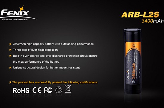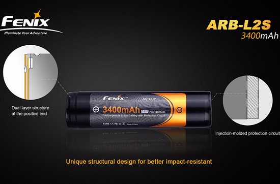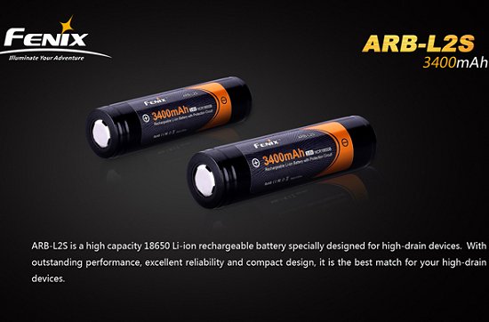 Der Fenix 18650 LiIon Akku ARB-L2S bietet mit 3400mAh ausreichend Kapazität für eine lange Leuchtdauer Ihrer LED Lampe.